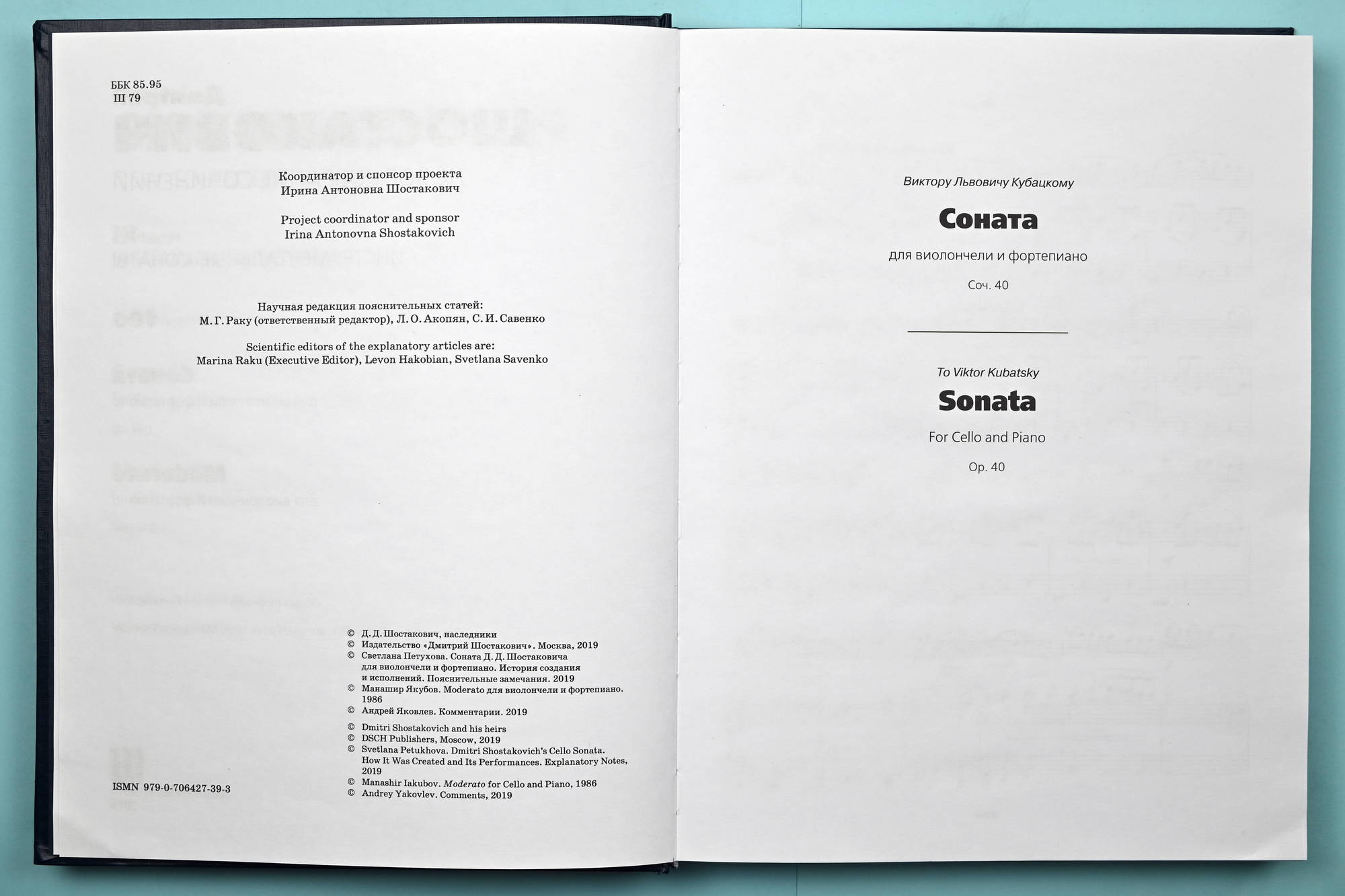 This publication of the Sonata for Cello and Piano is based on the edition of the Sonata edited by Viktor Kubatsky, which was the last edition of the work during the composer’s lifetime—Muzyka Publishers, Moscow, 1971 (E-71), the edition of the Sonata in Volume 38 of Dmitri Shostakovich’s Collected Works, which is based on E-71—Muzyka Publishers, Moscow, 1982 (E-82), and the 2007 edition based on the two above-mentioned editions—DSCH, Moscow (E-2007), which is a republication of the 1996 edition (DSCH, Moscow). The fair author’s manuscript of the work is taken into consideration, and in a few disputable episodes, the cello parts (separate notebooks) of the three main editions (E-71P, E-82P, E-2007P) are also taken into account.