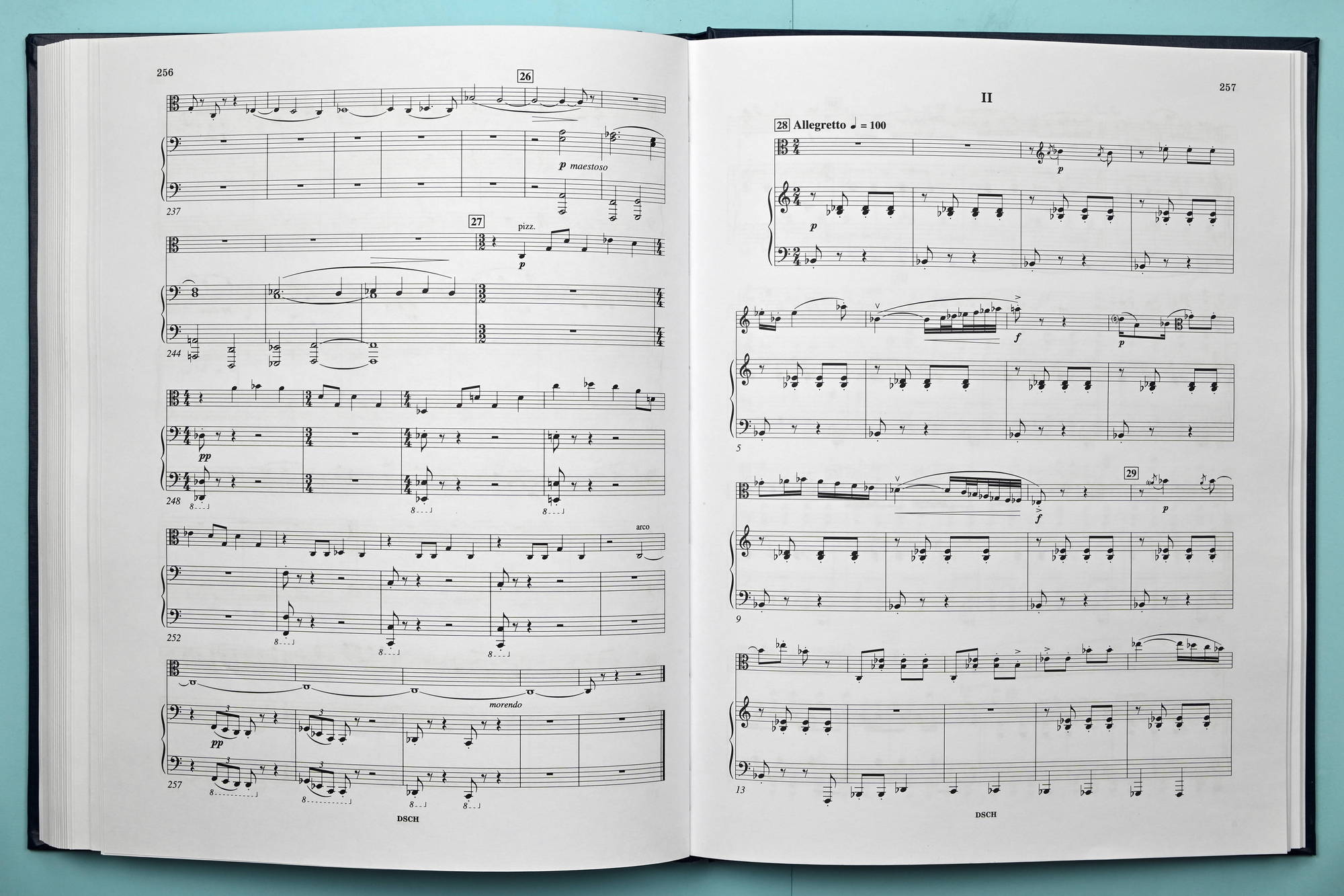 This publication of the Viola Sonata is based on the edition of the Sonata in Volume 38 of Dmitri Shostakovich’s Collected Works—Muzyka Publishers, Moscow, 1982 (E). The following sources are referred to: the author’s manuscript of the Sonata (A) and the collotype edition of the work that predates all the printed publications, issued by the USSR Muzfond in 1975 (C). In a number of disputable episodes, the following sources are referred to: the viola part (a separate notebook) edited by Fedor Druzhinin and included in E (EP), as well as the viola part of C (CP).