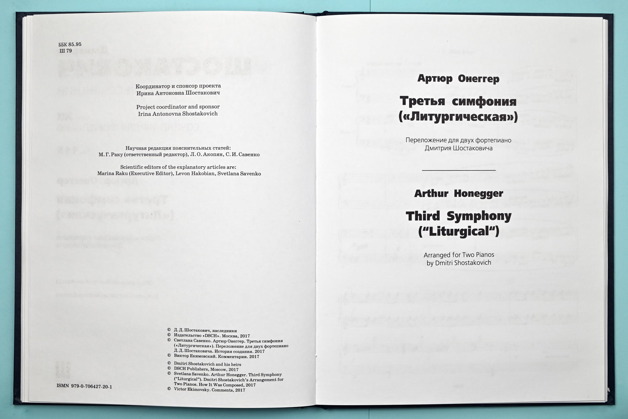 Arthur Honegger. Liturgical Symphony. Arranged for two pianos.