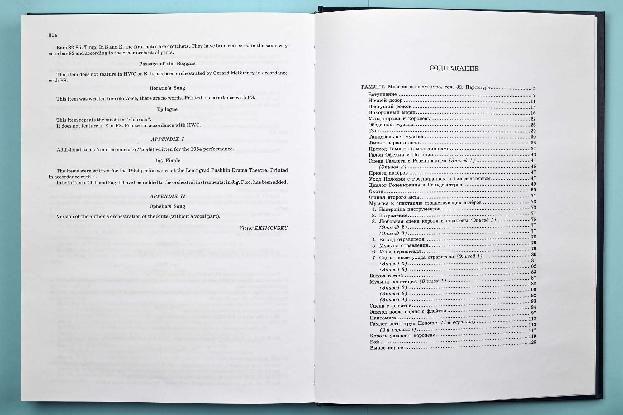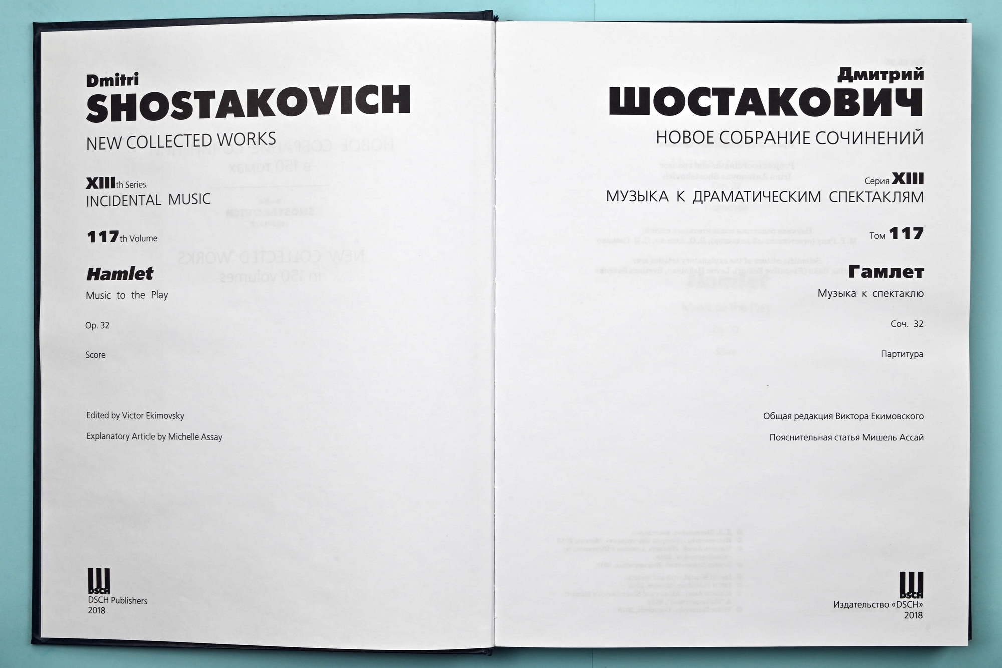 This publication is based on the edition: D. Shostakovich, Collected Works, in 42 vols., Vol. 27, Muzyka Publishers, Moscow, 1987. Other sources are Suite, Op. 32a, published in 1960 by Sovetskiy kompositor Publishers and the incomplete hand-written copy of the score arranged for the parts by Lev Solin entitled “Items Not Included in the Suite of Hamlet”, kept in the museum of the Vakhtangov Theatre (Hamlet file, No. 27).