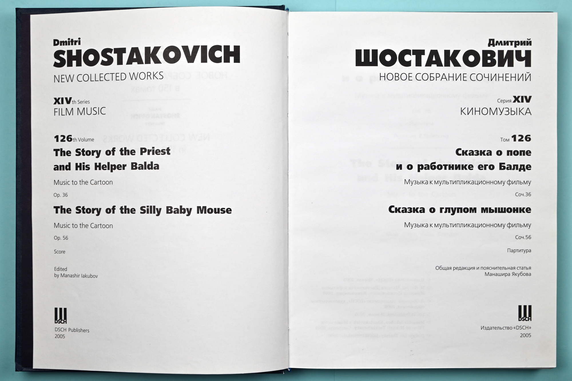 In this edition the music score to the film The Story of the Priest and His Helper Balda is being published in the version compiled by composer Vadim Bibergan, one of Shostakovich’s students at the Leningrad Conservatory. Vadim Bibergan worked on his teacher’s composition during the staging of the ballet Balda at Russia’s Bolshoi Theatre in 1999.
