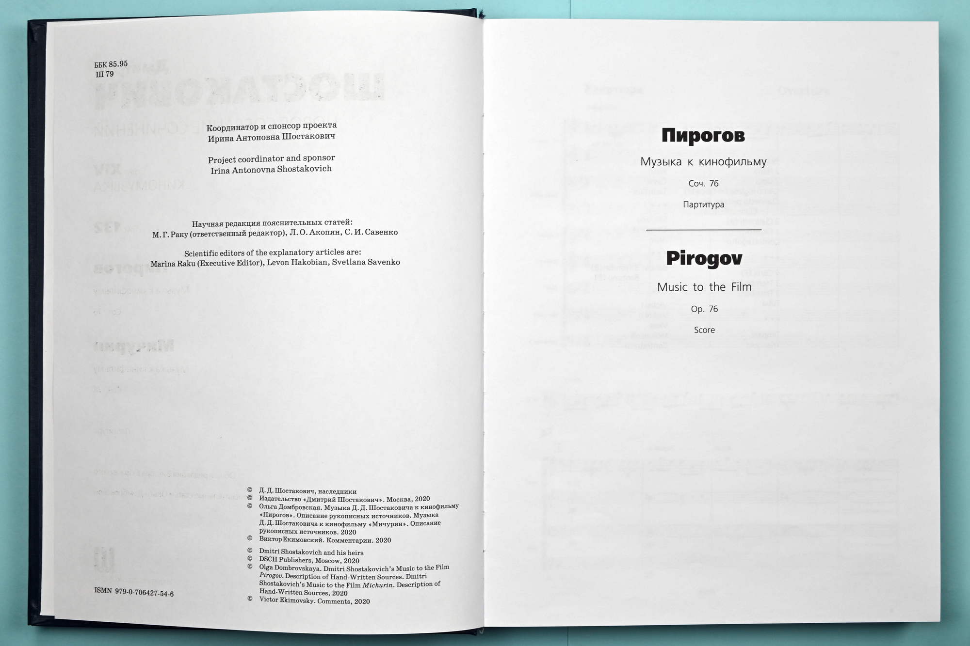 This publication is based on Dmitri Shostakovich’s manuscript kept in Dmitri Shostakovich’s Archive, rec. gr. 1, section 1, f. 34, collated with the film’s soundtrack. In addition to the author’s manuscript, there is also a manuscript of a Suite containing five items compiled by Levon Atovmyan (the full score is kept in the Music Bureau of the USSR Fund, now the Music Centre of the Moscow Union of Composers, No. 5850).