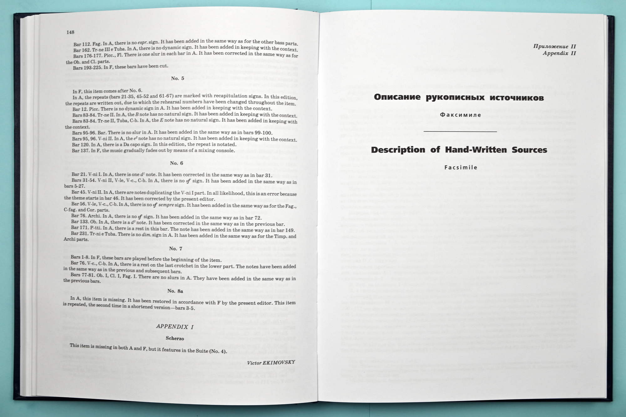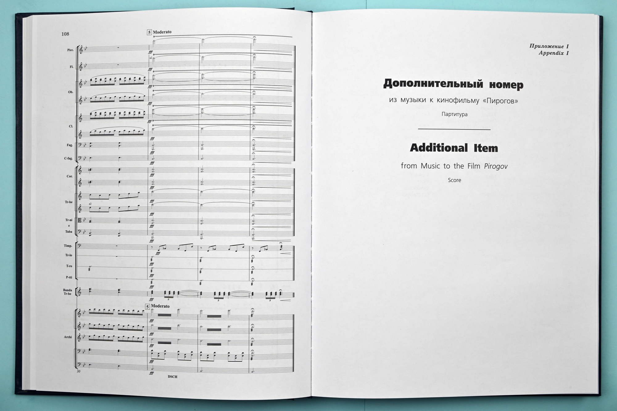 The manuscript does not always correspond to the way the music actually sounds in the film: some items have been cut and some fragments of the items are repeated in different places in the film. In addition, there is an item in the film soundtrack that is missing in the manuscript of the score, and there is also the score of an item that is missing in the film soundtrack. Two items, 8 and 9, written for piano solo, are printed in accordance with the draft author’s manuscript of the piano score, which is stored in the Russian National Museum of Music, rec. gr. 32, f. 262 (PS). They are not found in the manuscript of the score.