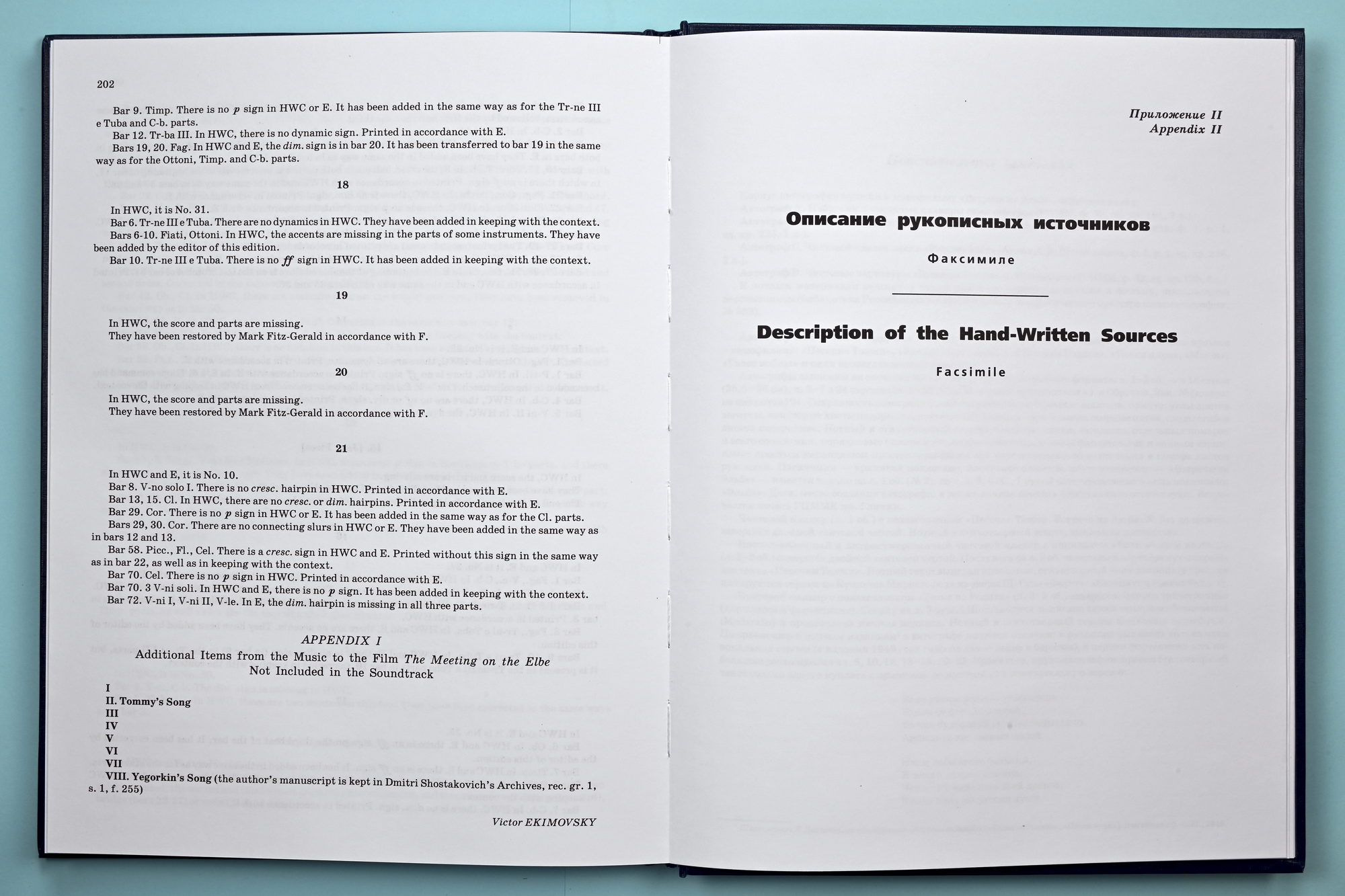 Eight items from this score (Nos. 10, 13, 22-25, 28 and 34) have been reproduced in this edition: D. Shostakovich, Collected Works in 42 Volumes, Vol. 42, Muzyka Publishers, Moscow, 1987. The scores of several items have been lost and there are no music sources; they have been restored by Mark Fitz-Gerald from the film soundtrack.