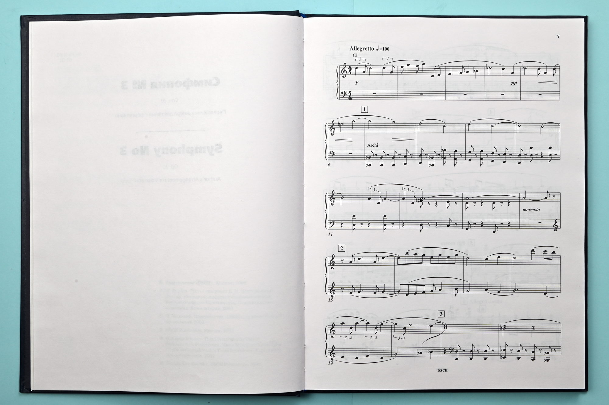 The author's arrangement (piano score) of the Third Symphony for singing with a piano two hands is being published for the first time according to the author's manuscript kept in Dmitri Shostakovich's private depository in the Russian State Archives of Literature and Art (rec. gr. 2048, inv. 1, f. 3).