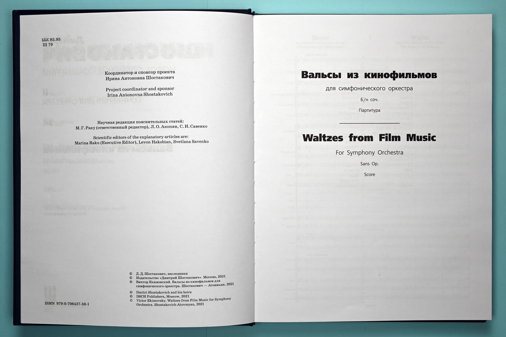 One of the best known collections of Shostakovich’s film music is Waltzes from Films for symphony orchestra (first published by Moscow’s Sovetsky Kompozitor in 1959). The cycle of eight waltzes is not Shostakovich’s own project, but the collection became popular under his name without mention of Atovmyan as the author and compiler. It is performed by conductors both in its entirety and as separate items and included in the repertoires of orchestras all over the world.
