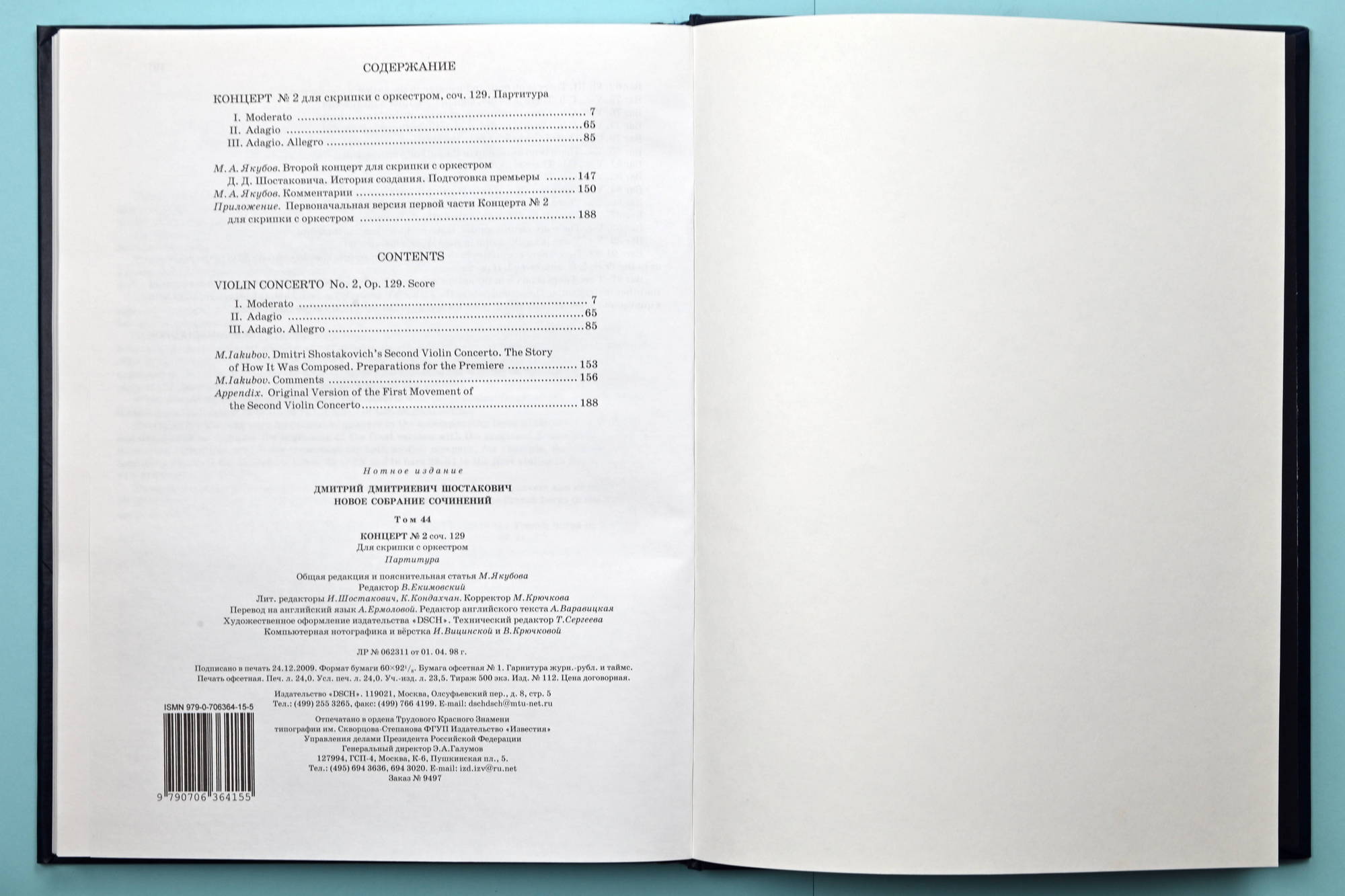 The score of the Concerto was published by Sikorski Publishers in 1967, by Sovetsky compozitor Publishers in 1970, and by Muzyka Publishers in 1981 as part of 14th volume of Shostakovich’s Collected Works.