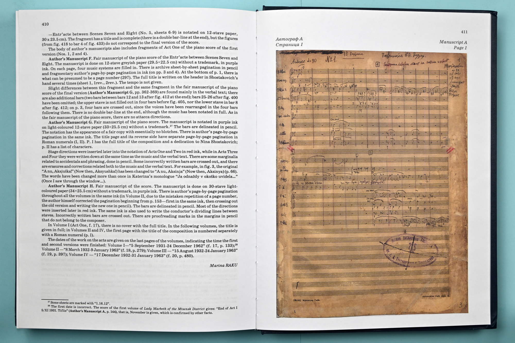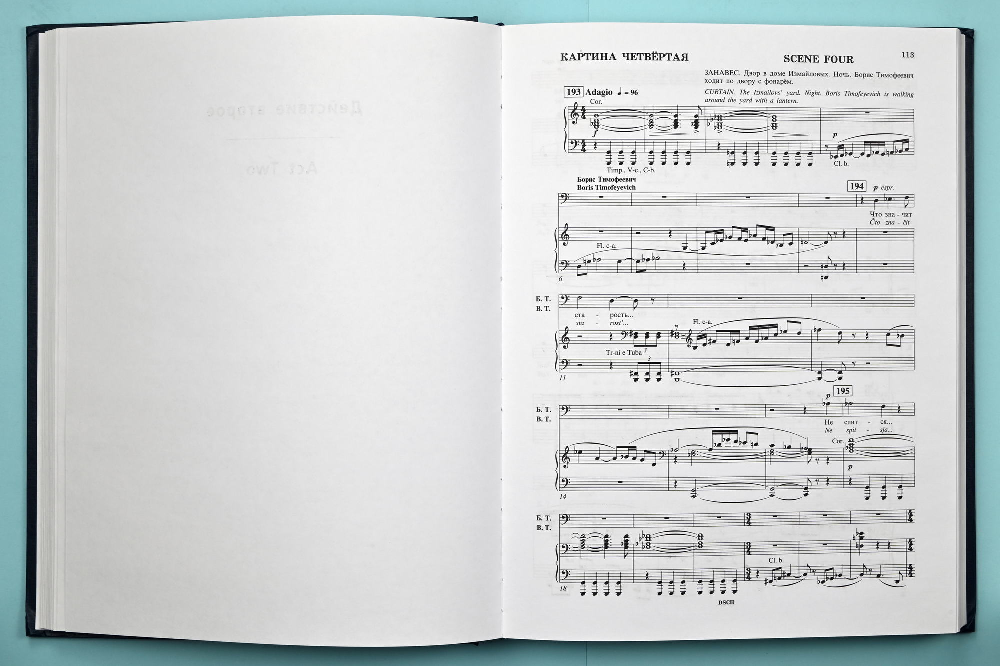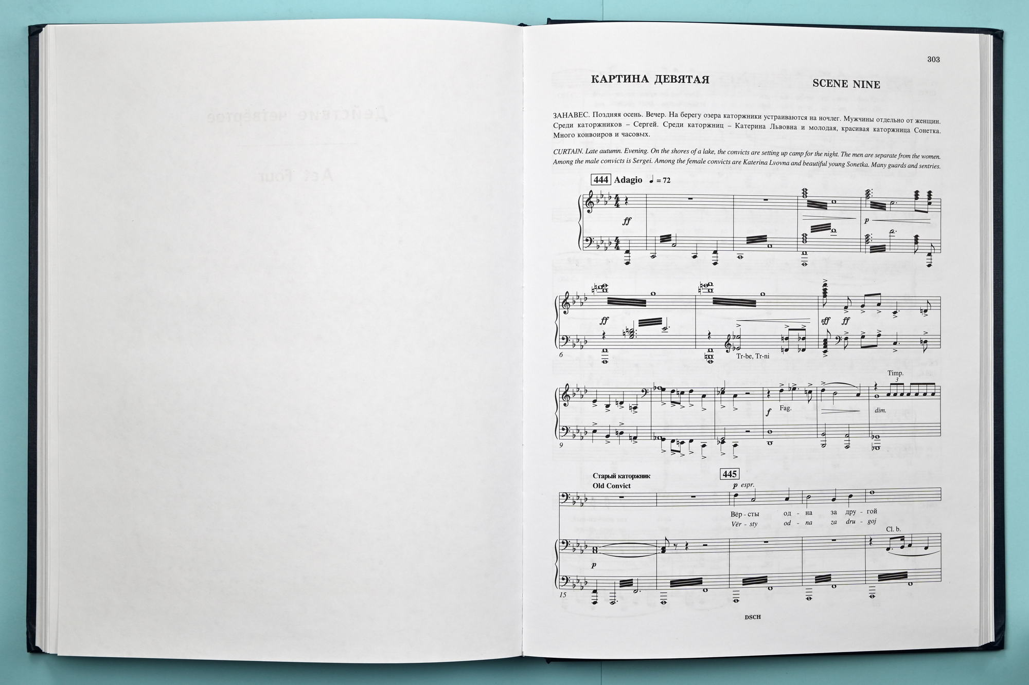 The full score of the first version of the opera was not published during Shostakovich’s lifetime. In the second half of the 1970s, the composer’s widow, Irina Shostakovich, sent the copy of the manuscript she had to Mstislav Rostropovich for performing and recording. In 1978, this version of the work was recorded by Rostropovich and the musician handed the notation he had to Hans Sikorski Publishers. The publisher also received world rights from the heirs to hire out the first version of the opera. Later, when conditions developed in Russia for performing and publishing the first version of the work, Hans Sikorski Publishers handed a copy to DSCH Publishers for hire of the first version of the opera in the composer’s homeland.