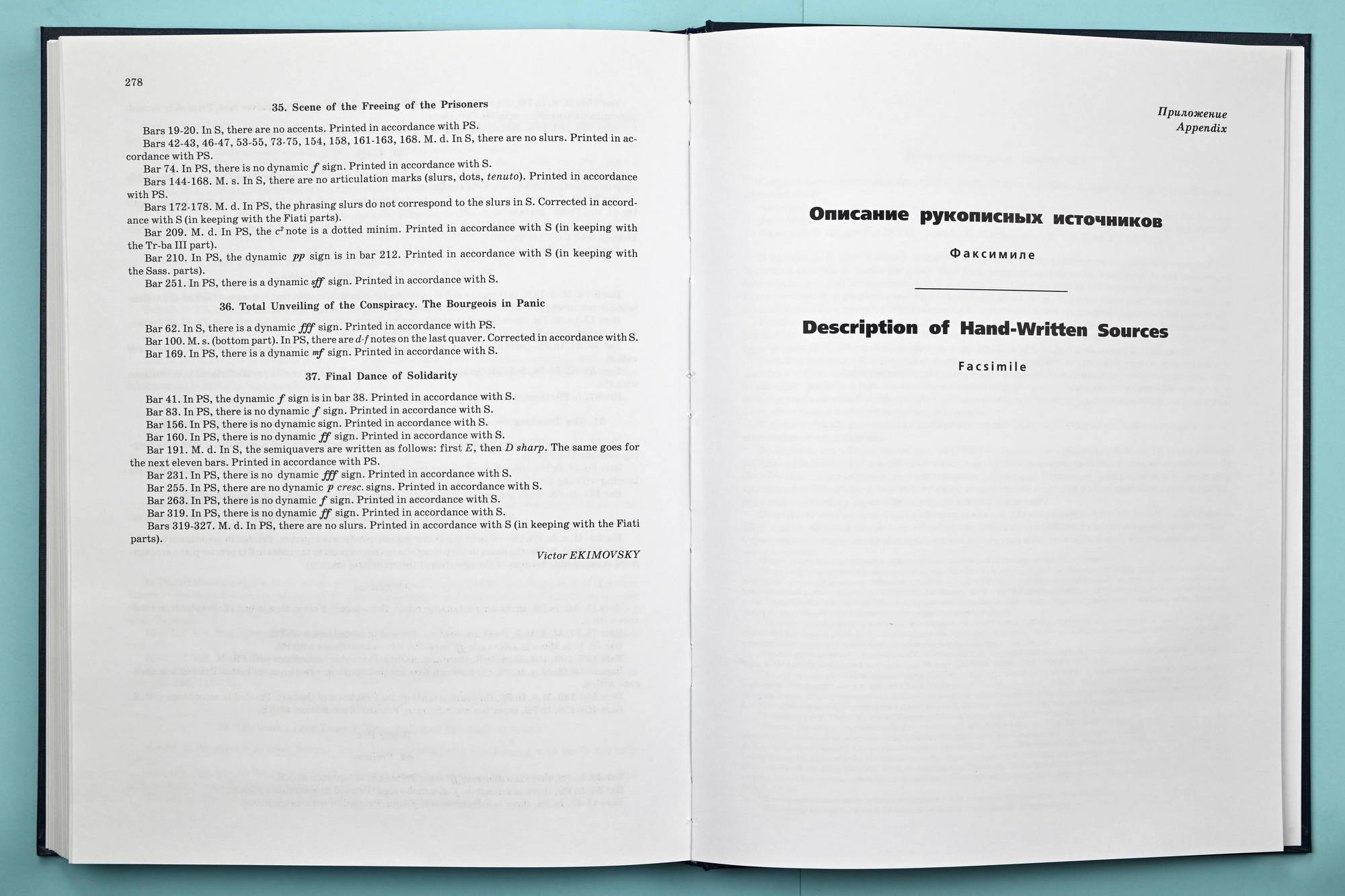 The piano score is printed in accordance with the authorised hand-written copies edited by Veniamin Basner (kept at the Central Music Library of the Mariinsky Theatre, I 1 Sh‑798, f. 23791 and the St. Petersburg State Museum of Theatrical and Musical Art, main stocklist 16903/2).