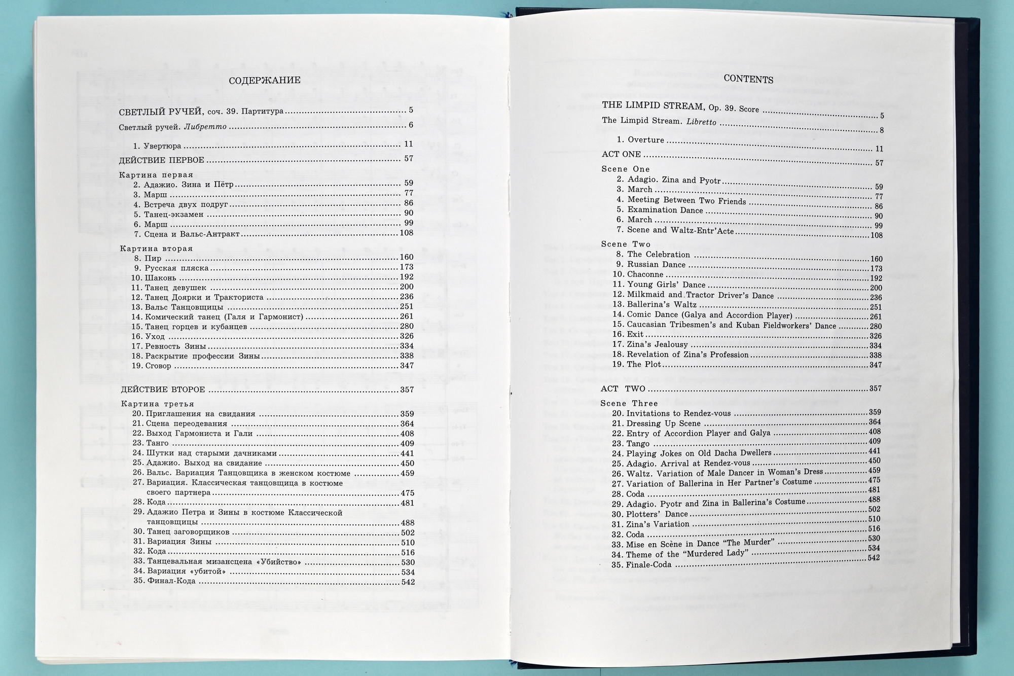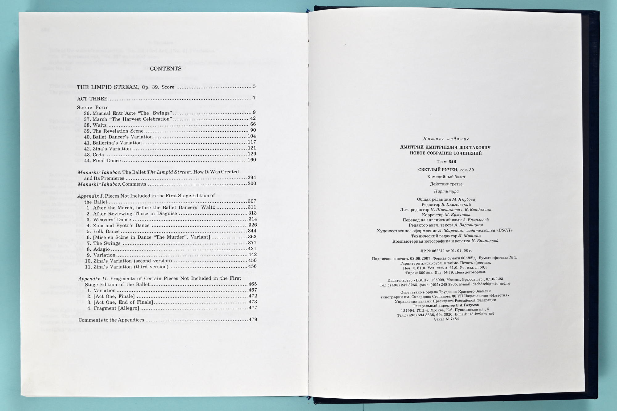 In 1997, the piano score of the ballet The Limpid Stream was published by DSCH Publishers (text and explanatory article prepared by I. Barsova, comments by I. Barsova and M. Iakubov, edited by M. Iakubov).