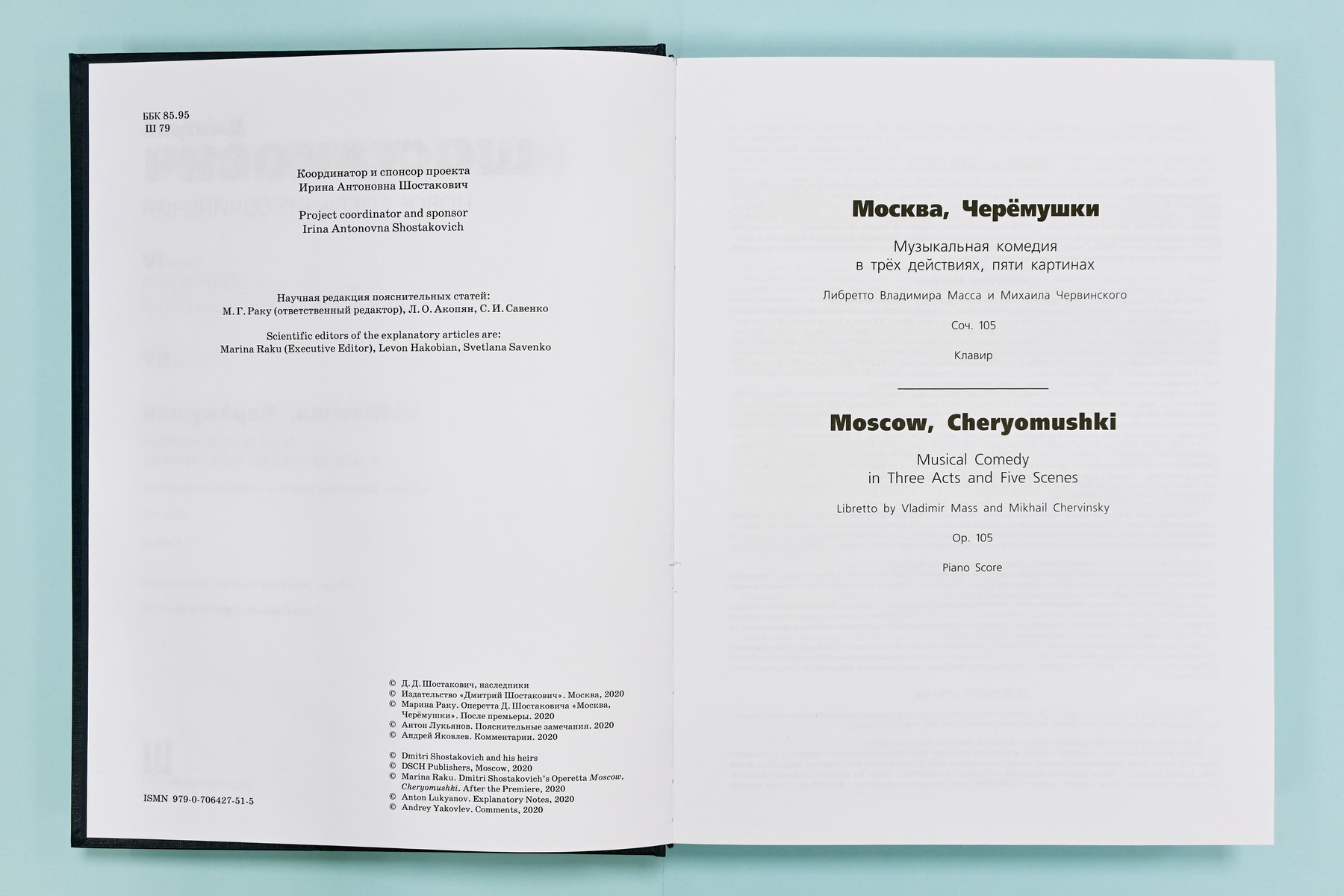 This edition is based on the publication of the piano score of the musical comedy Moscow, Cheryomushki in Vol. 25 of Dmitri Shostakovich’s Collected Works, Muzyka Publishers, Moscow, 1986 (PS), as well as the publication of the score of the musical comedy in Vol. 66 of New Collected Works, DSCH, Moscow, 2006 (S). The publication of the score of the musical comedy in Vol. 24 of Collected Works, Muzyka Publishers, Moscow, 1986 (S-86), on which S is based, was also taken into account. In some cases, the manuscripts of individual items of the piano score1 are referred to, as well as the author’s manuscript of the score of an additional item “Sergei’s Song”.