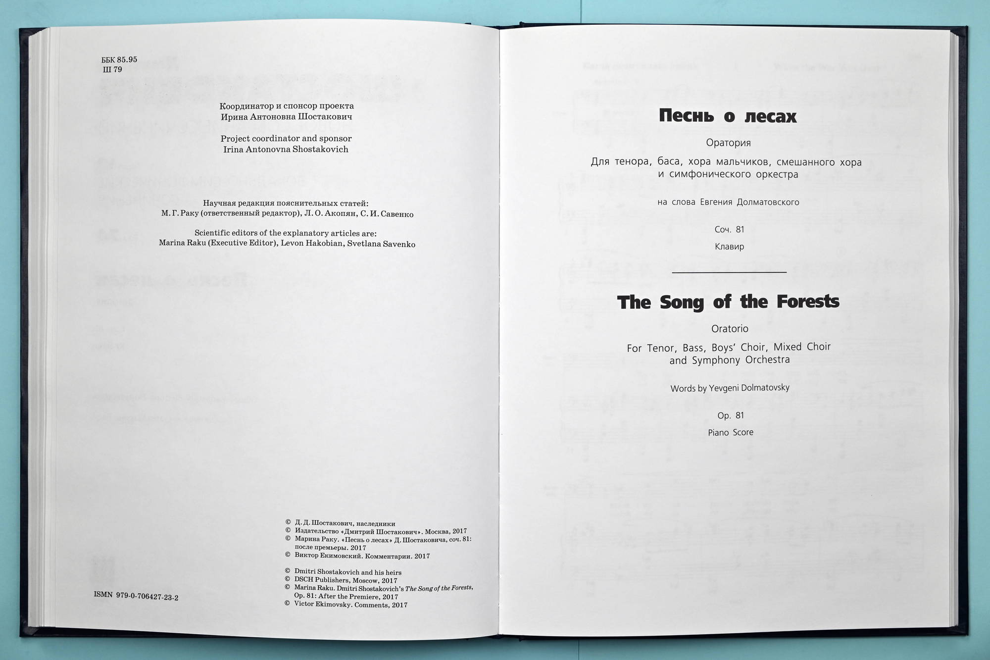 For this publication, the author’s manuscript has been edited by the editor of the volume in keeping with the score published in the New Collected Works, Vol. 73, DSCH, 2017. In the event of differences between the piano score and the score, the vocal and choral parts are printed in accordance with the score.