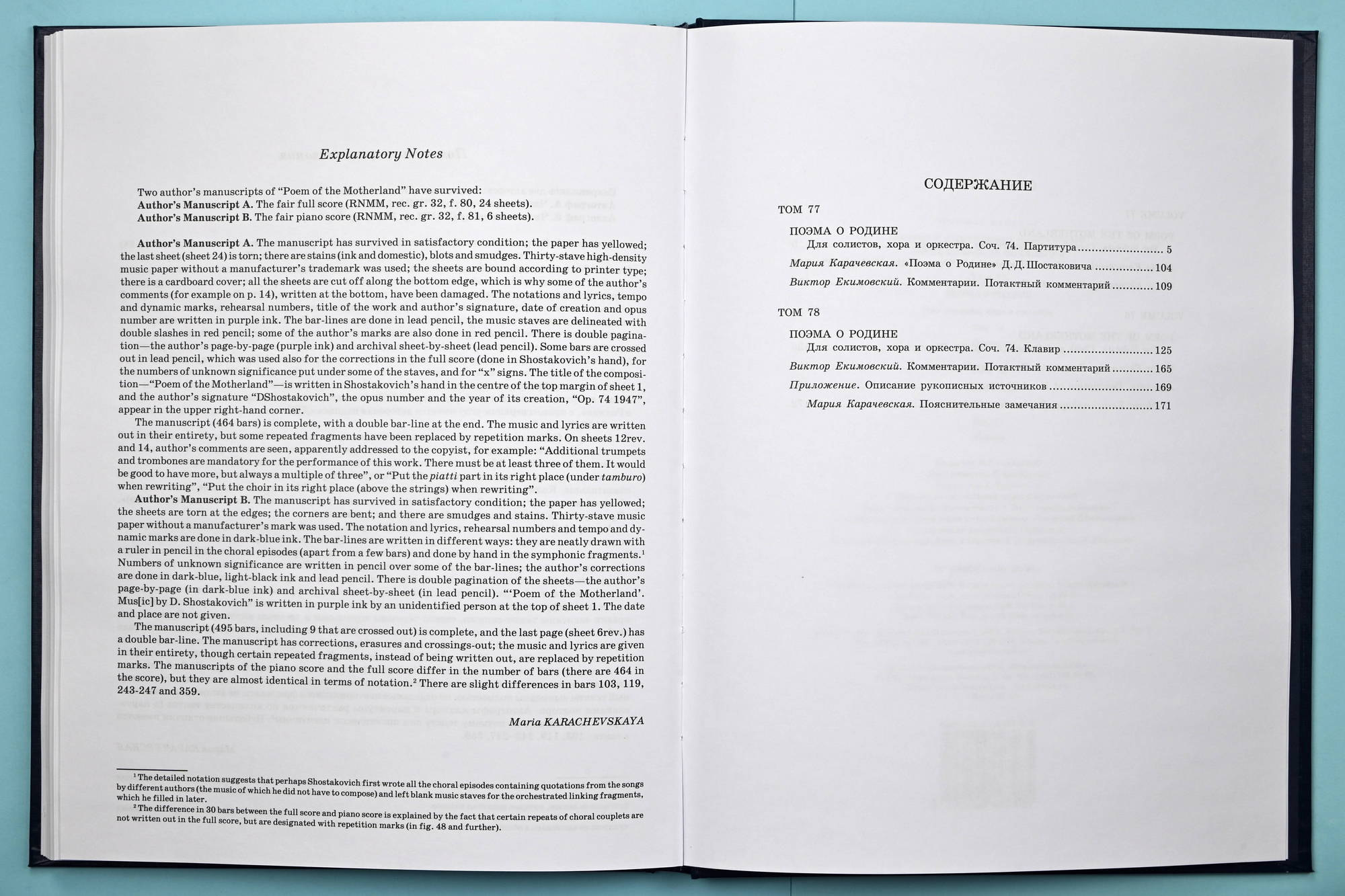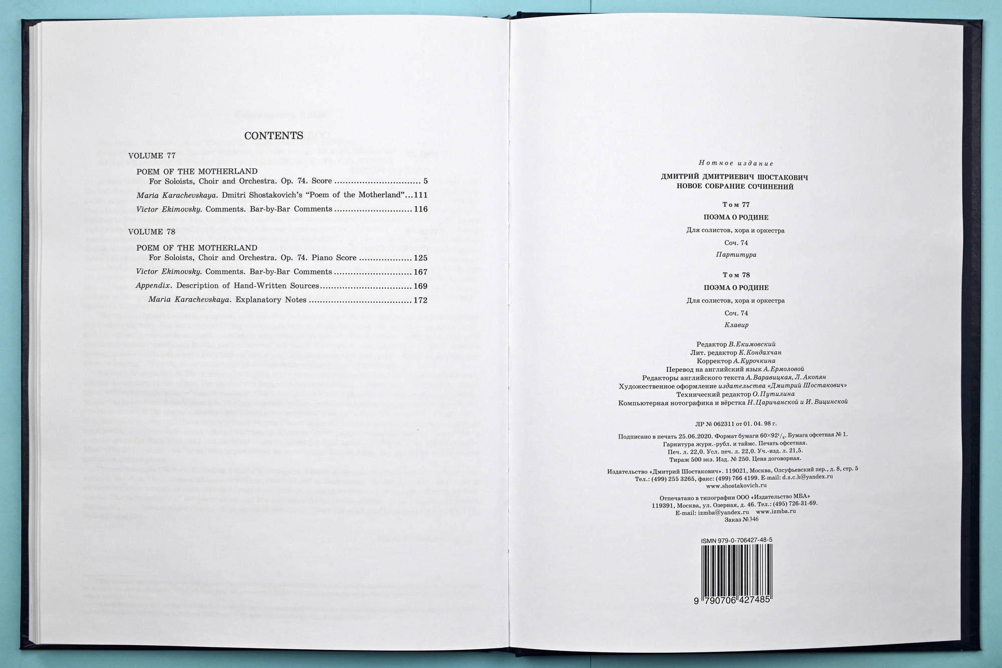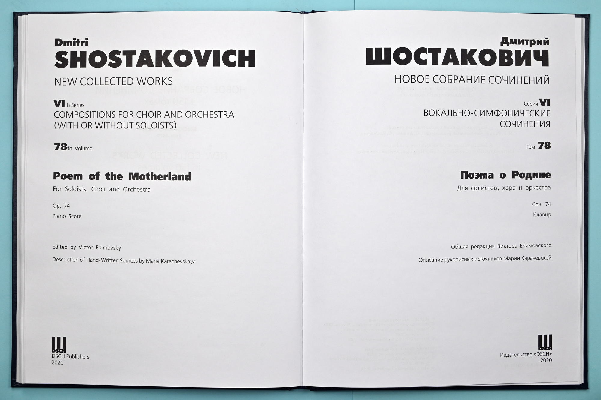 This publication is based on the collotype edition—D. Shostakovich, “Poem of the Motherland”, Muzfond of the USSR, Moscow, 1947, collated with the author’s manuscript kept at RNMM, rec. gr. 32, f. 81 and the full score published in this book—D. Shostakovich, New Collected Works, Vol. 77, DSCH, Moscow.