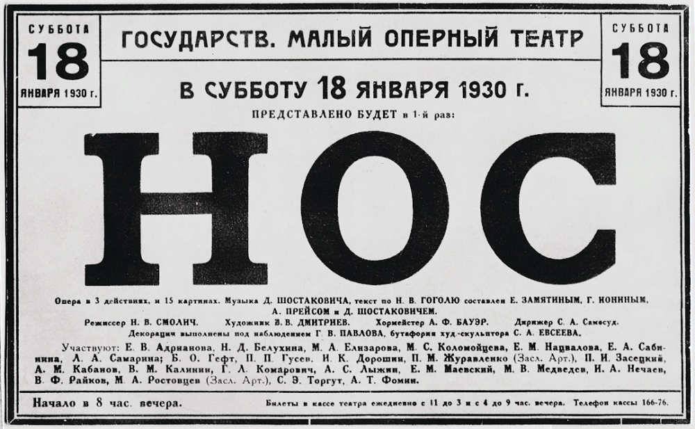 “Life is miserable. I have completed the second act of ‘The Nose’ on May 1st. Today I received a typed postcard, informing me in a polite way that my request for permission to go abroad has been rejected. The word ‘rejected’ is underlined in the same way as I have underlined it here in ink. <...> I am grateful to you that you have been trying to help me but I beg you not to go on. In general I don’t like asking for favours. I had been dreaming so much about Paris and Italy and got carried away... Now I’ve been deprived of it all. Indeed, I have been deprived of many things. Yet there are people who have been far more deprived than I. I shall not complain. I am throwing my cap into the air and shouting: Long live...!”