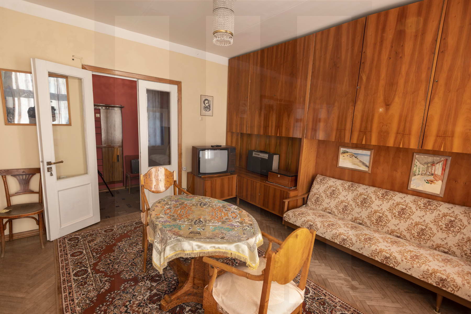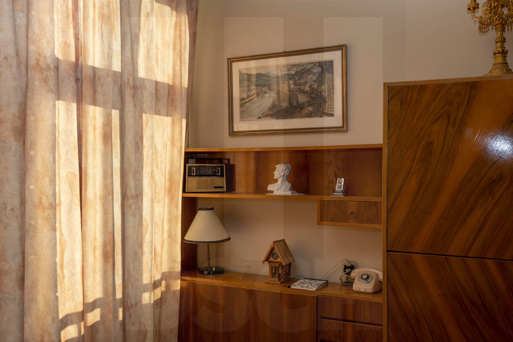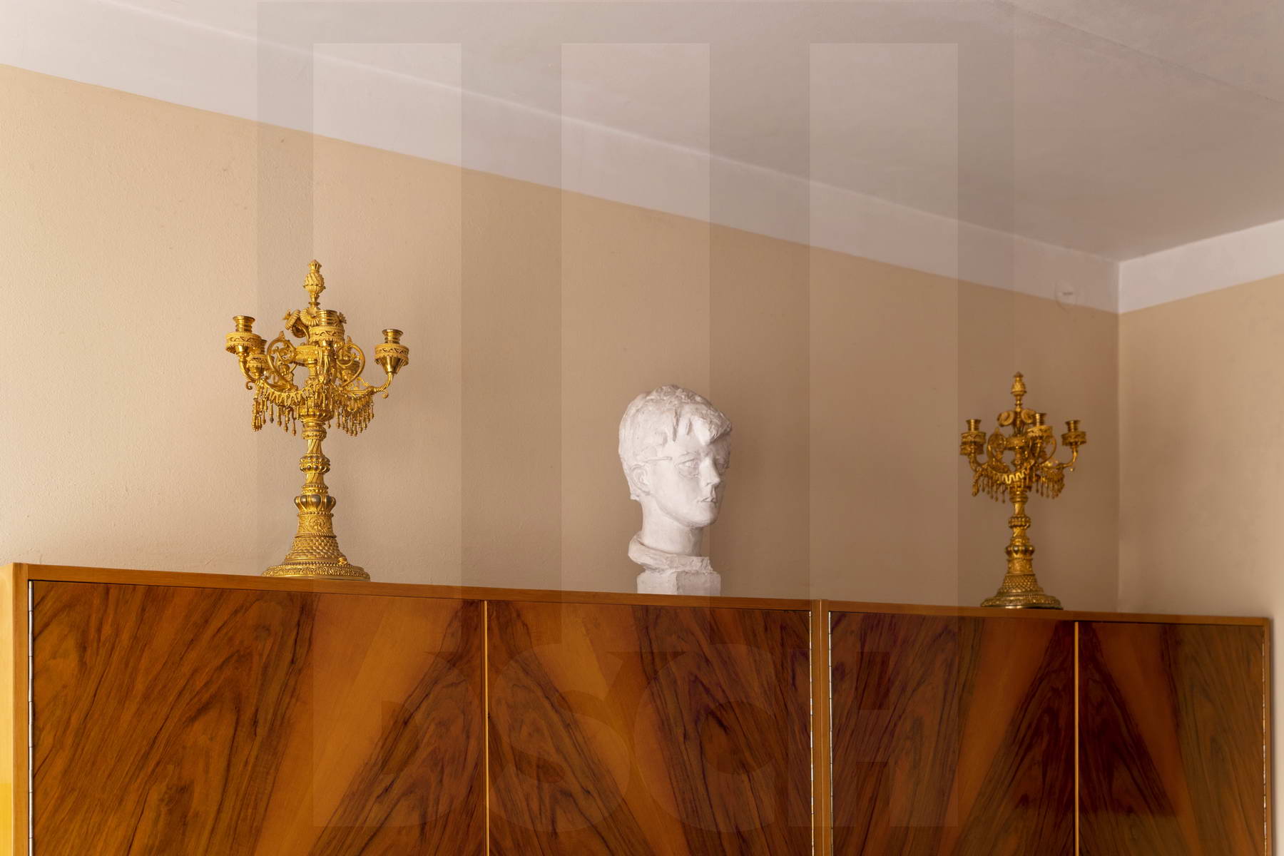 There is a sculptural portrait of Shostakovich on one of the shelves of the bookcase and another on one of the shelves of the cupboard.