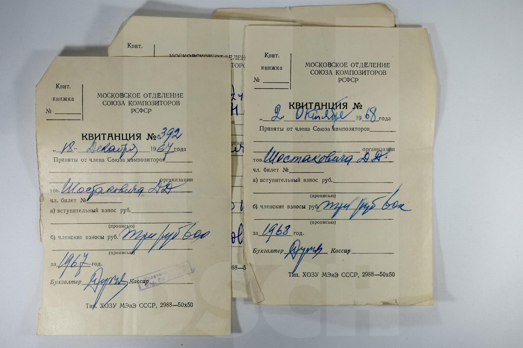Certificate of the Union of Composers of the USSR, membership dues payment information.