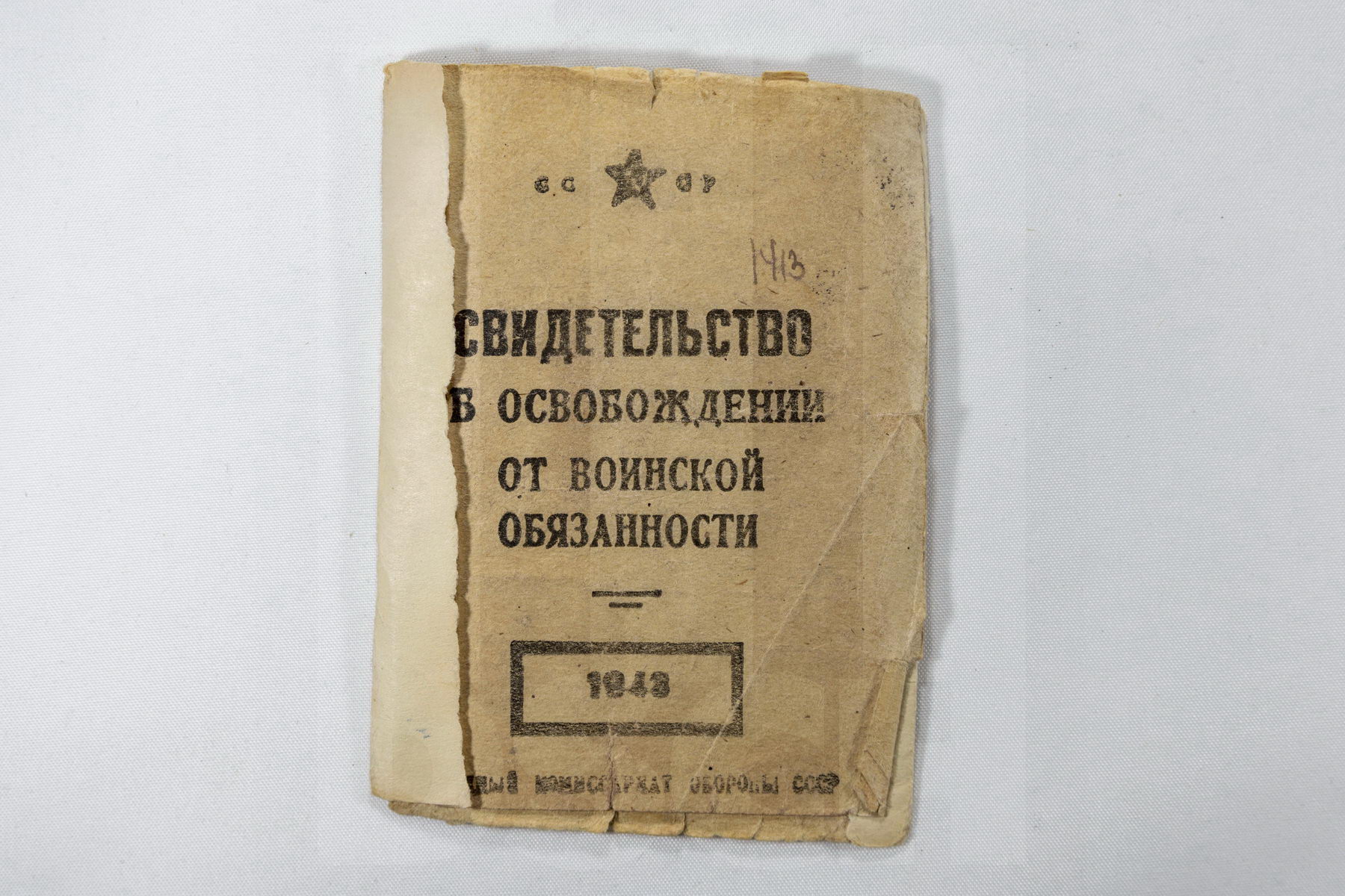Certificate of exemption from military service. Shostakovich was declared “unfit for military service due to poor eyesight”.