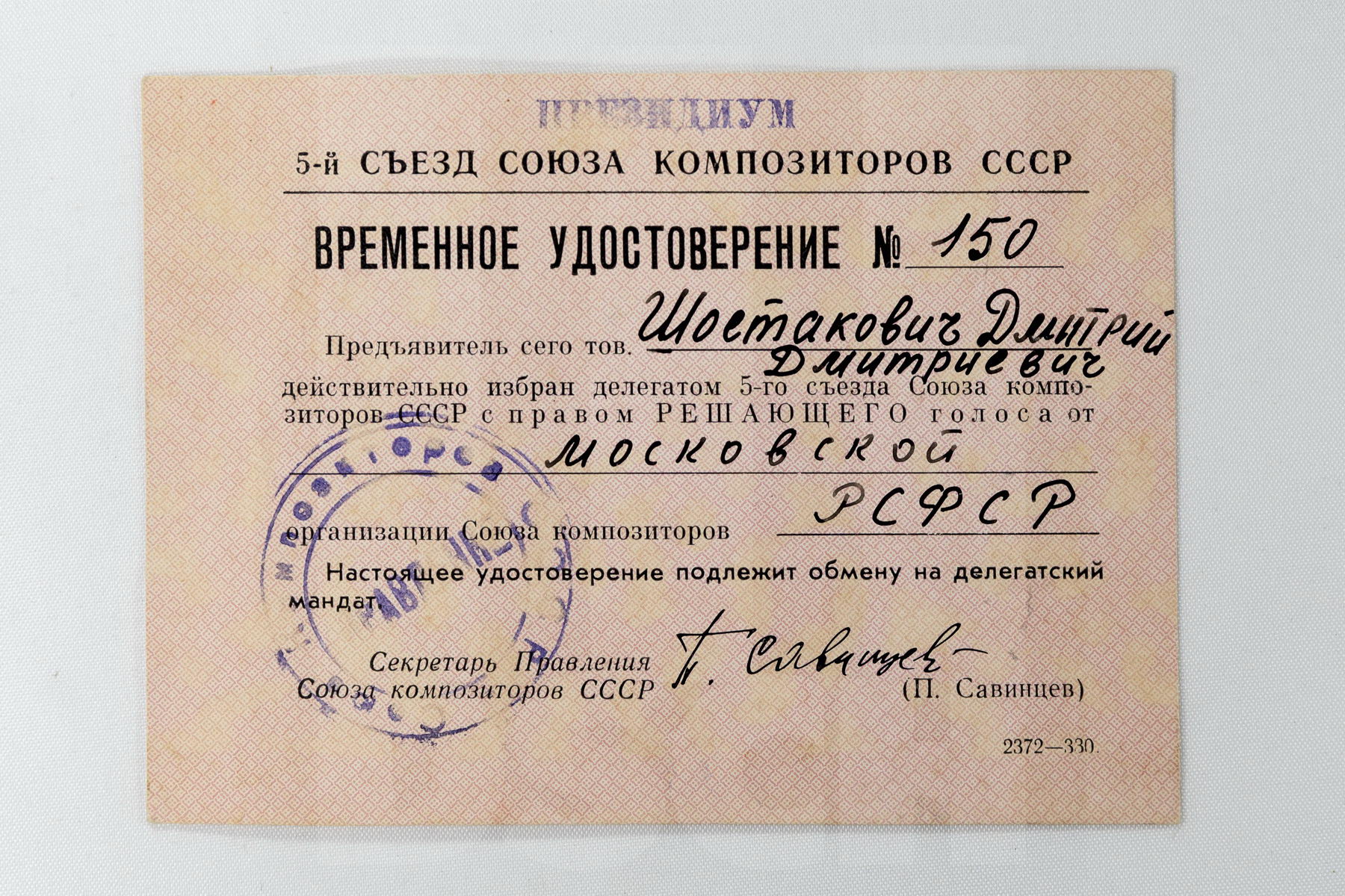 Membership card for the USSR Music Foundation (USSR Muzfond).