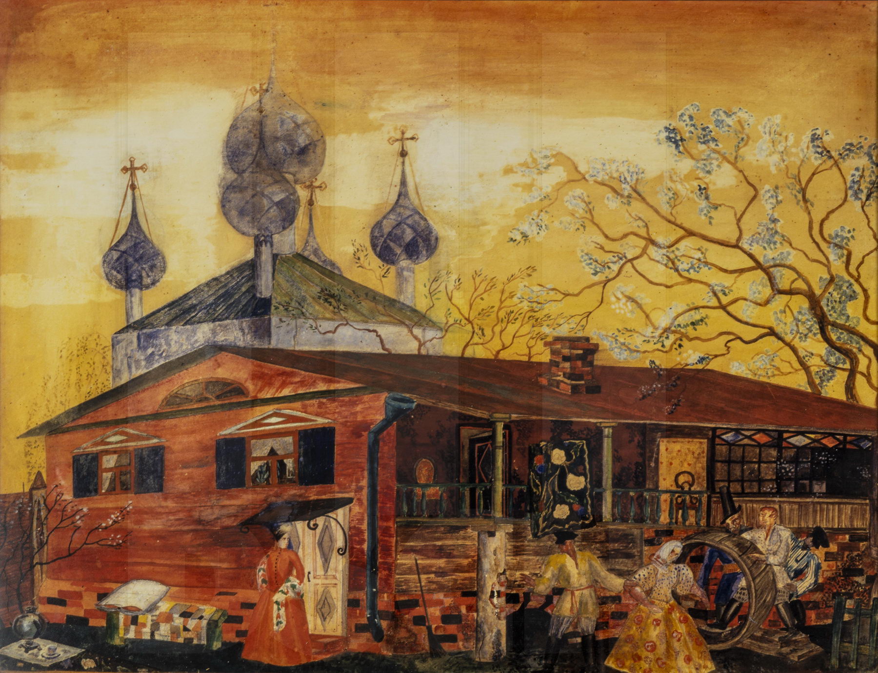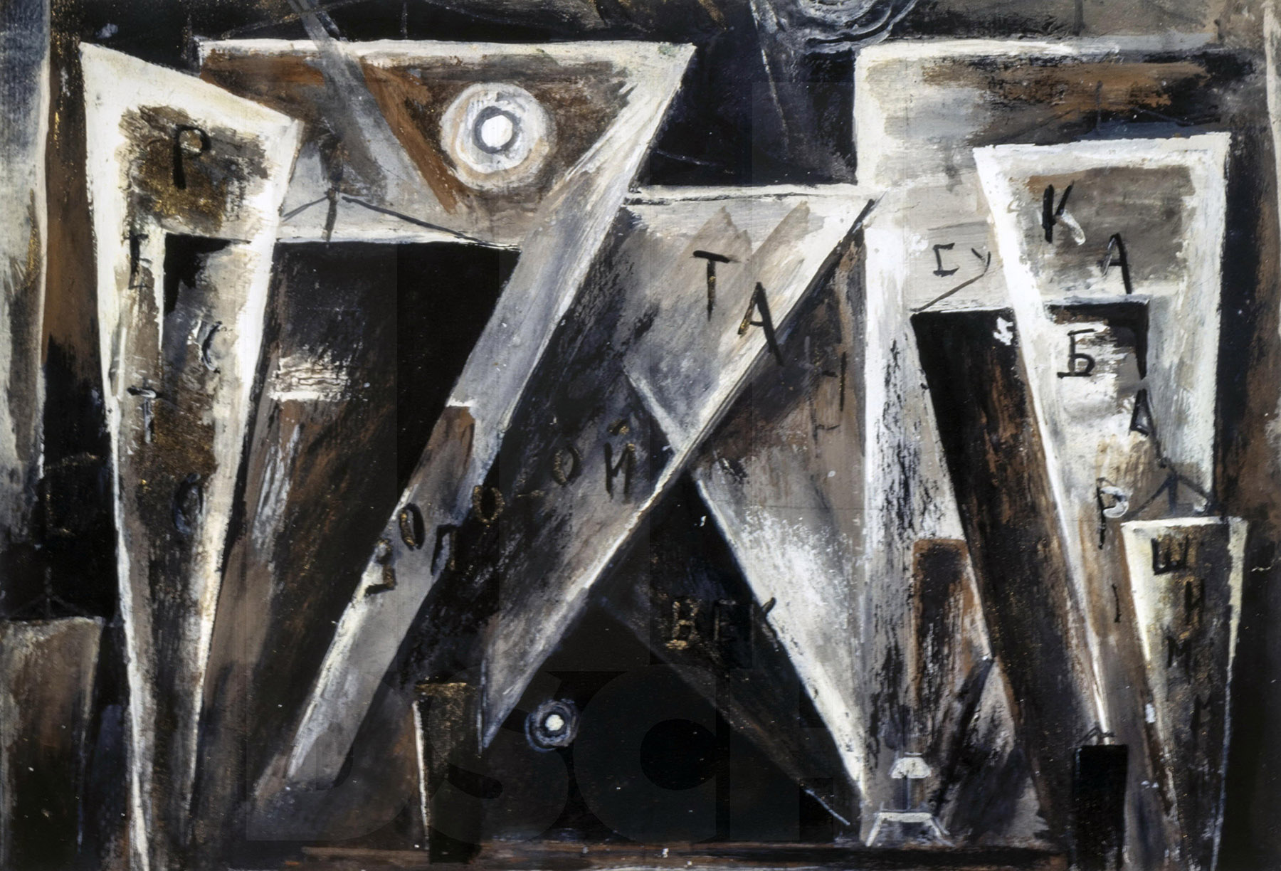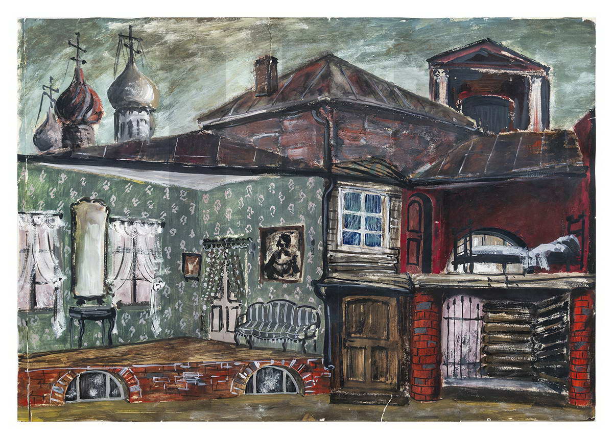 Dmitriev V. V. Set design for the first production of the opera “Lady Macbeth of the Mtsensk District” by Dmitry Shostakovich in MALEGOT. Leningrad, 1934. Oil on canvas. With a dedication inscription from 1939 on the back.