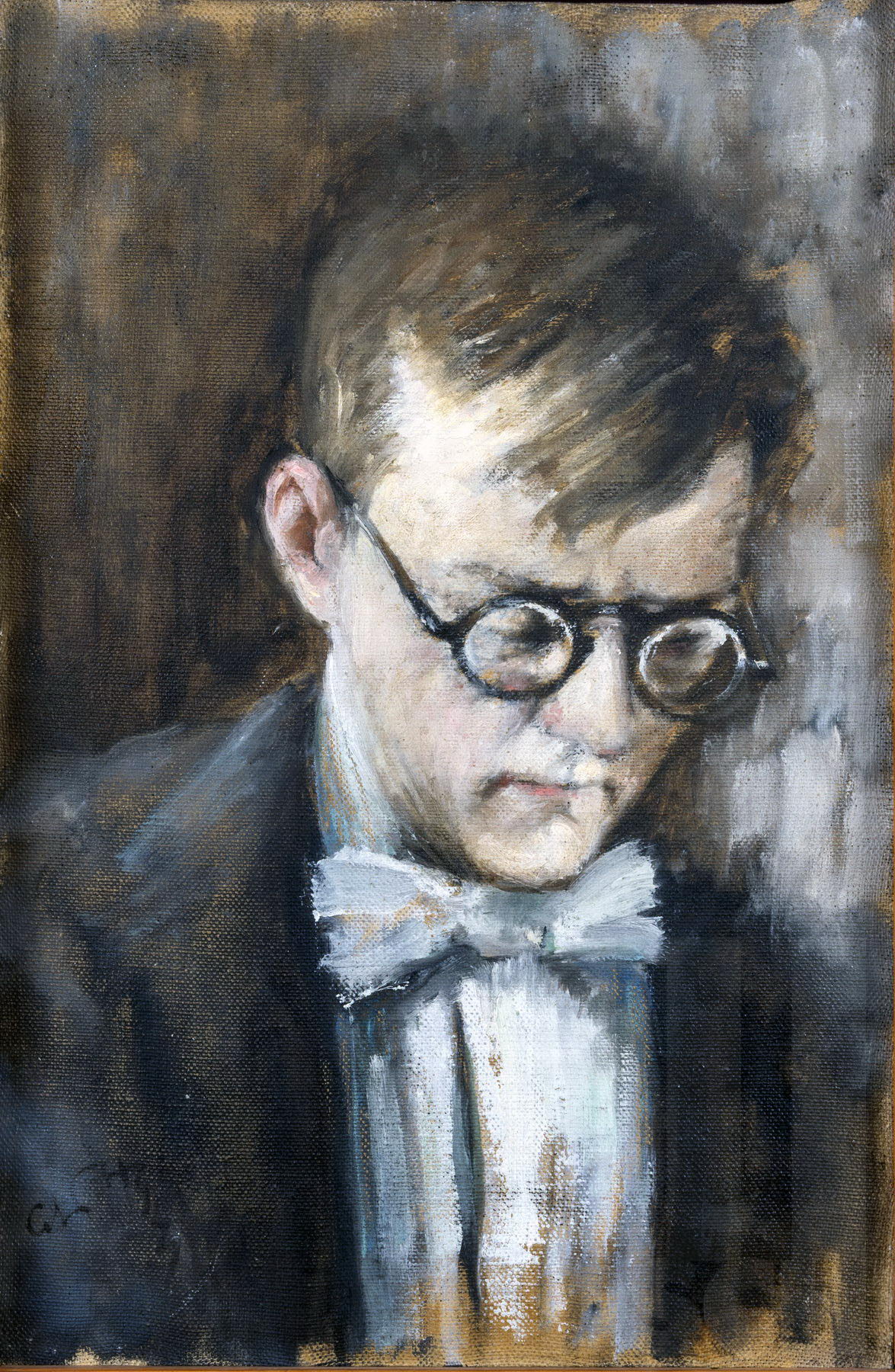 Unknown artist. Portrait of D. D. Shostakovich in an Oxford mantle.
