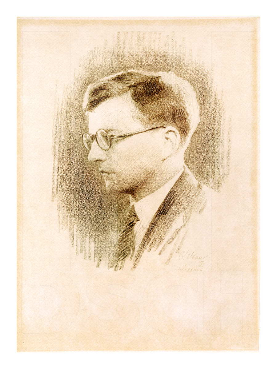 Artist K. Ivanov. Portrait of D. Shostakovich. Gorky city, 1955