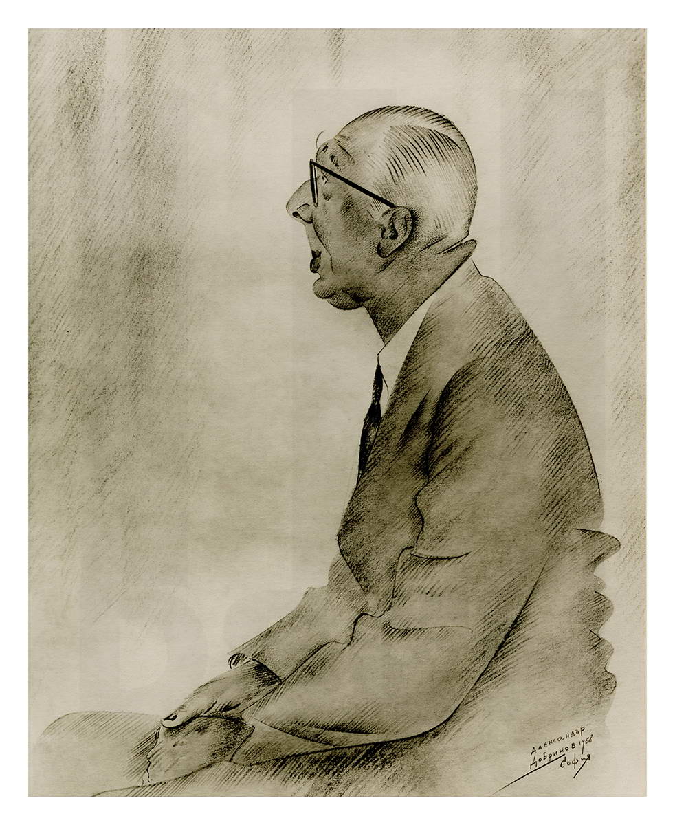 Artist A. Dobrinov. “D.D. Shostakovich. Quintet”. S.P. Shirinsky is a cello player. Bulgaria, Sofia, 1956