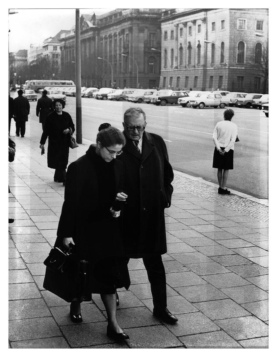 Dmitri Shostakovich and Irina Shostakovich on the street of Berlin, East Germany, Berlin, early 1970s.