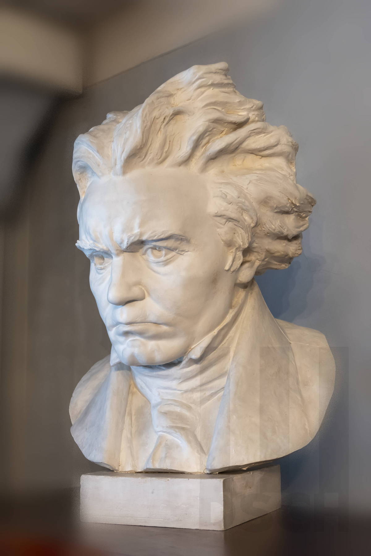 The sculptural portrait was made or repeated by the author from the portrait of Beethoven, created by Glikman in Leningrad in 1939. The sculpture was presented by the author to Shostakovich in the early 1970s, before Glikman's emigration. Beethoven is one of Dmitri Shostakovich's favorite composers.