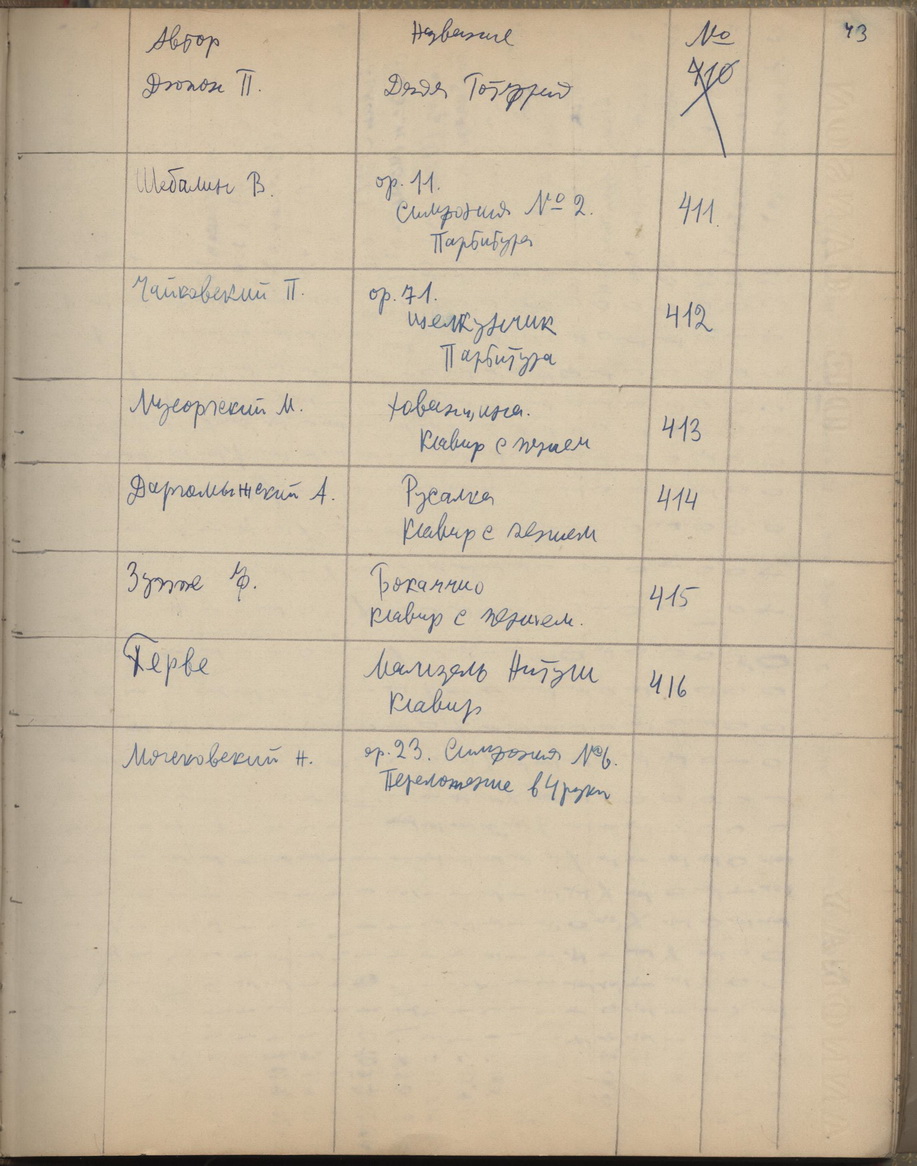 In 1944, the music library of the pianist, teacher, professor of the Leningrad Conservatory L. V. Nikolaev became part of the Shostakovich collection.