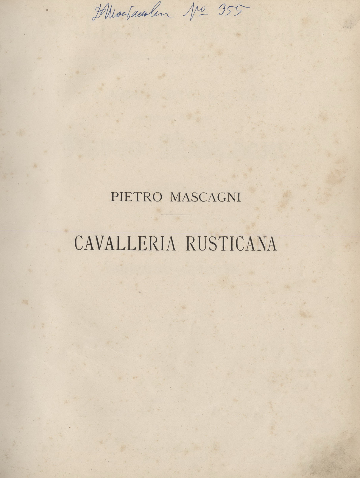 Sheet music from the collection of the Shostakovich family. Pietro Mascagni. Rural Honor. Opera. Arranged for Piano. Milan, publishing house Edoardo Sonzogno, early 20th century.