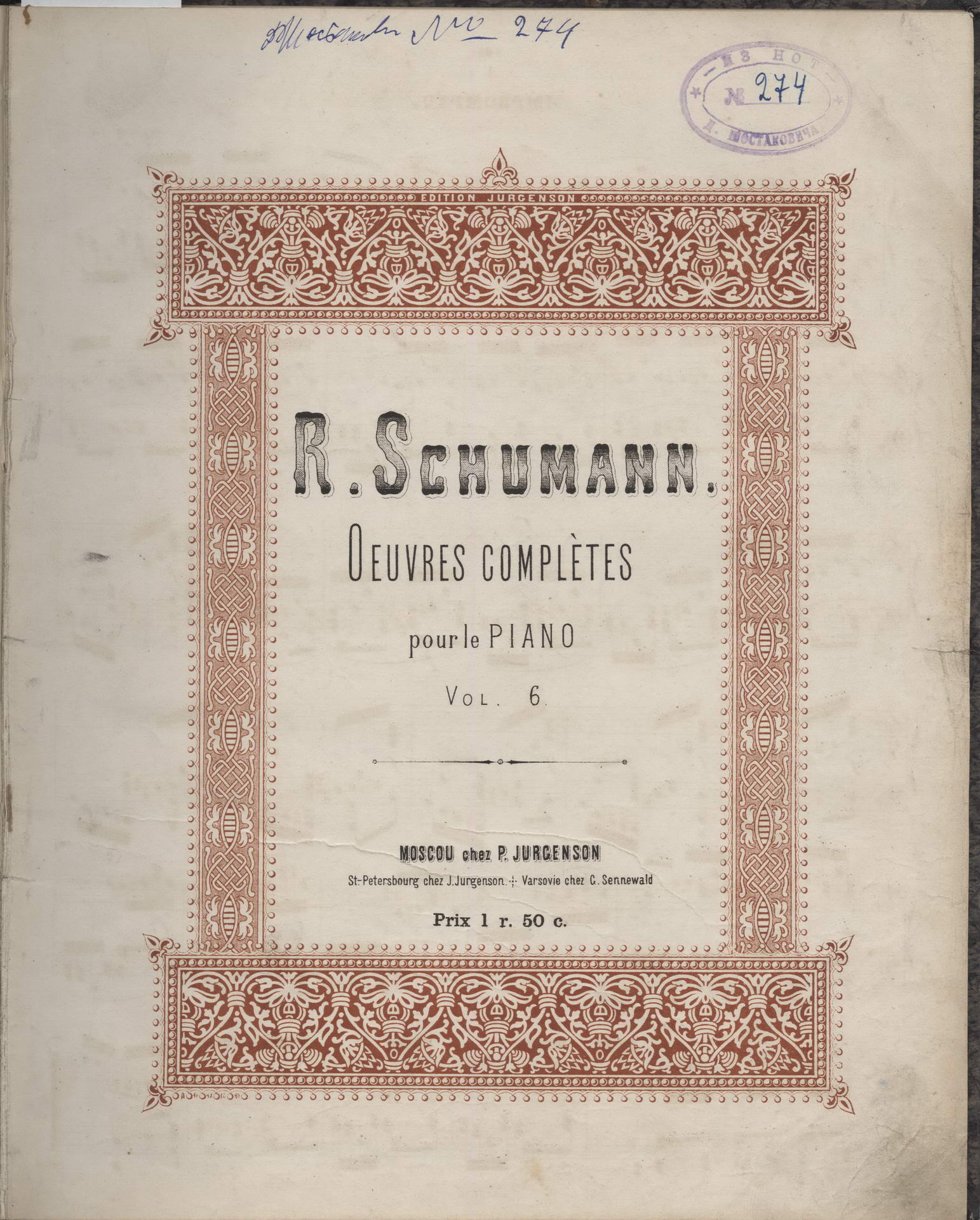 Robert Schumann. Collected Works for Piano. 6th book. P. Yurgenson publishing house. Moscow. The end of the 19th century.