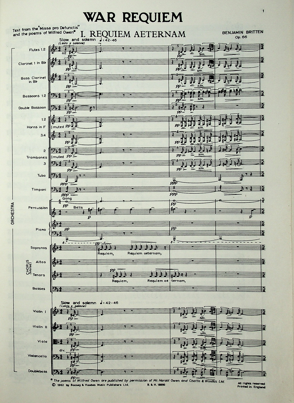 Benjamin Britten. “War Requiem”. For soloists, choir and orchestra. Boosey & Hawkes. London.