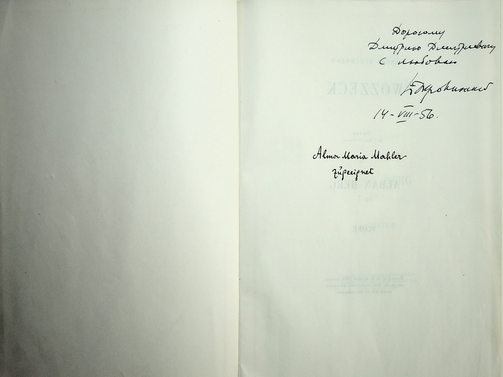 Alan Berg. “Wozzeck”. Opera. Score. With a dedication: “To dear Dmitry Dmitrievich with love. E. Mravinsky. 14.VIII.56.”