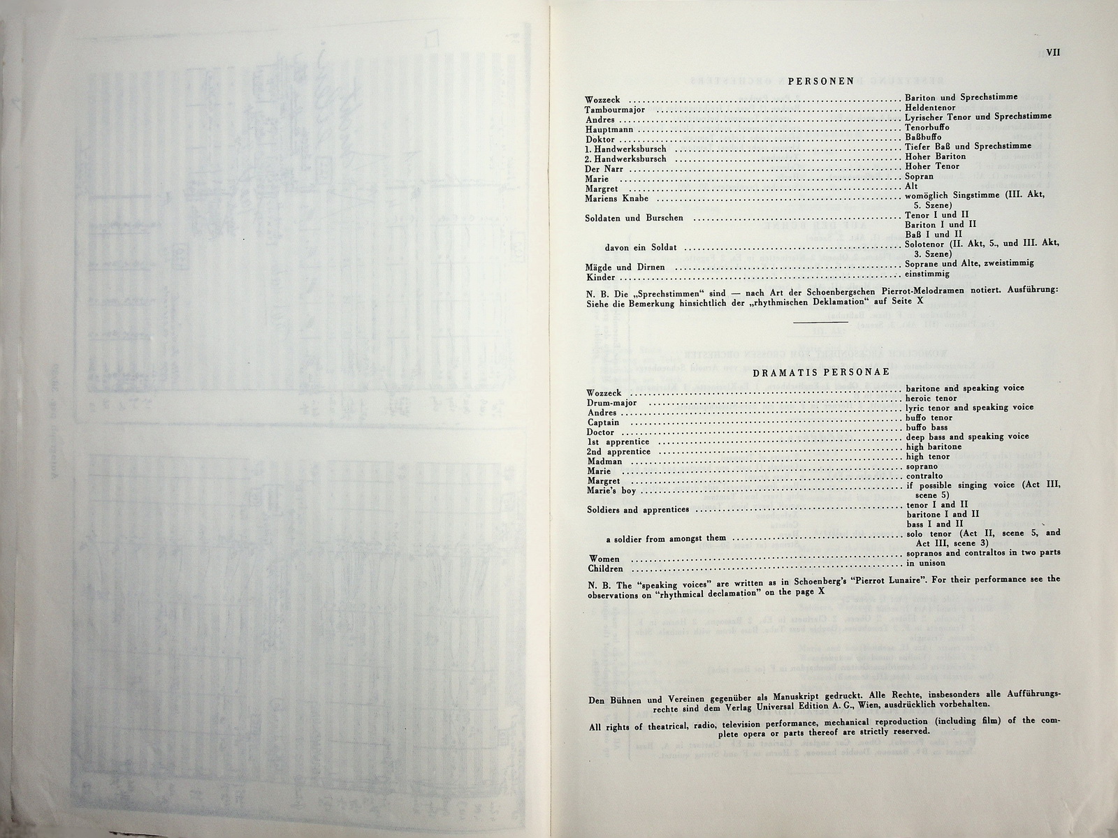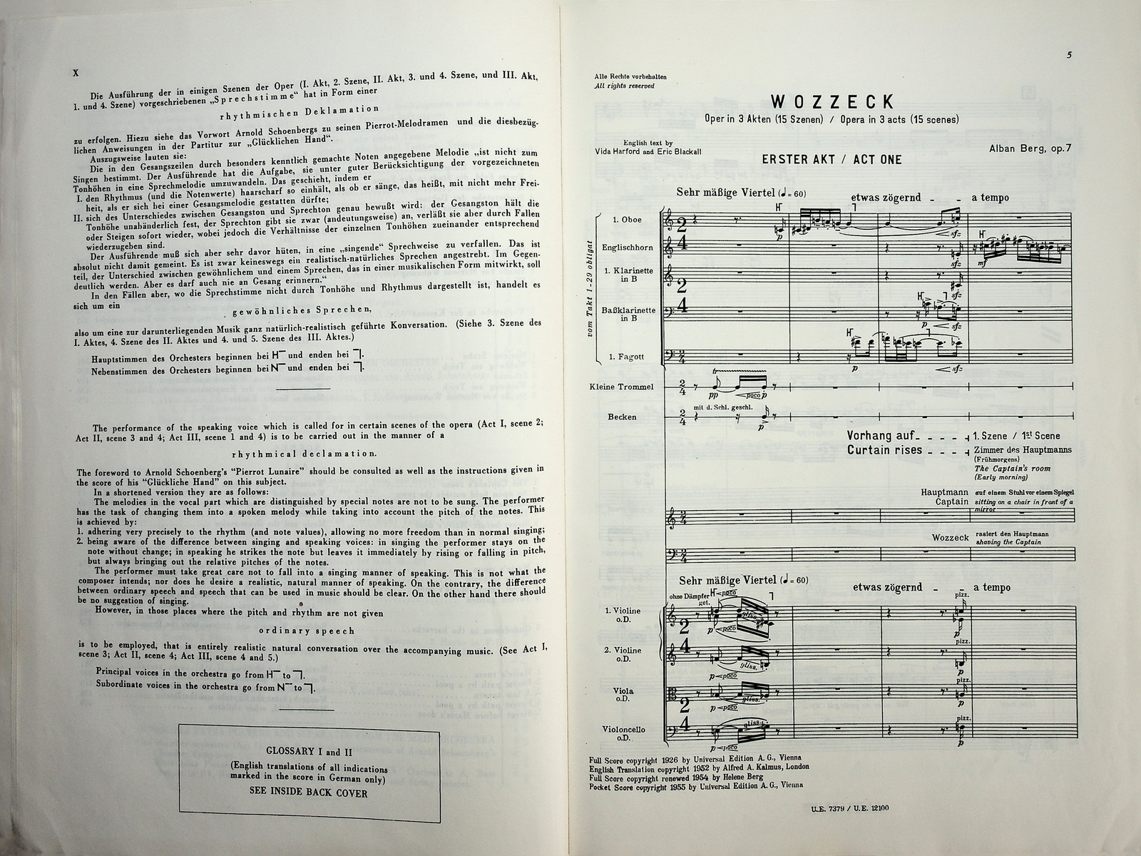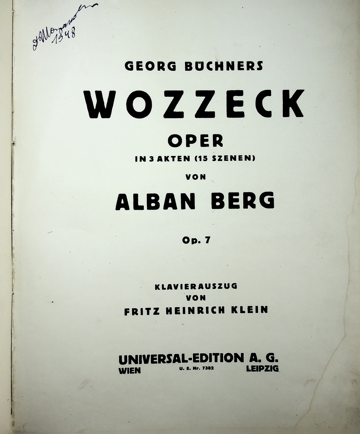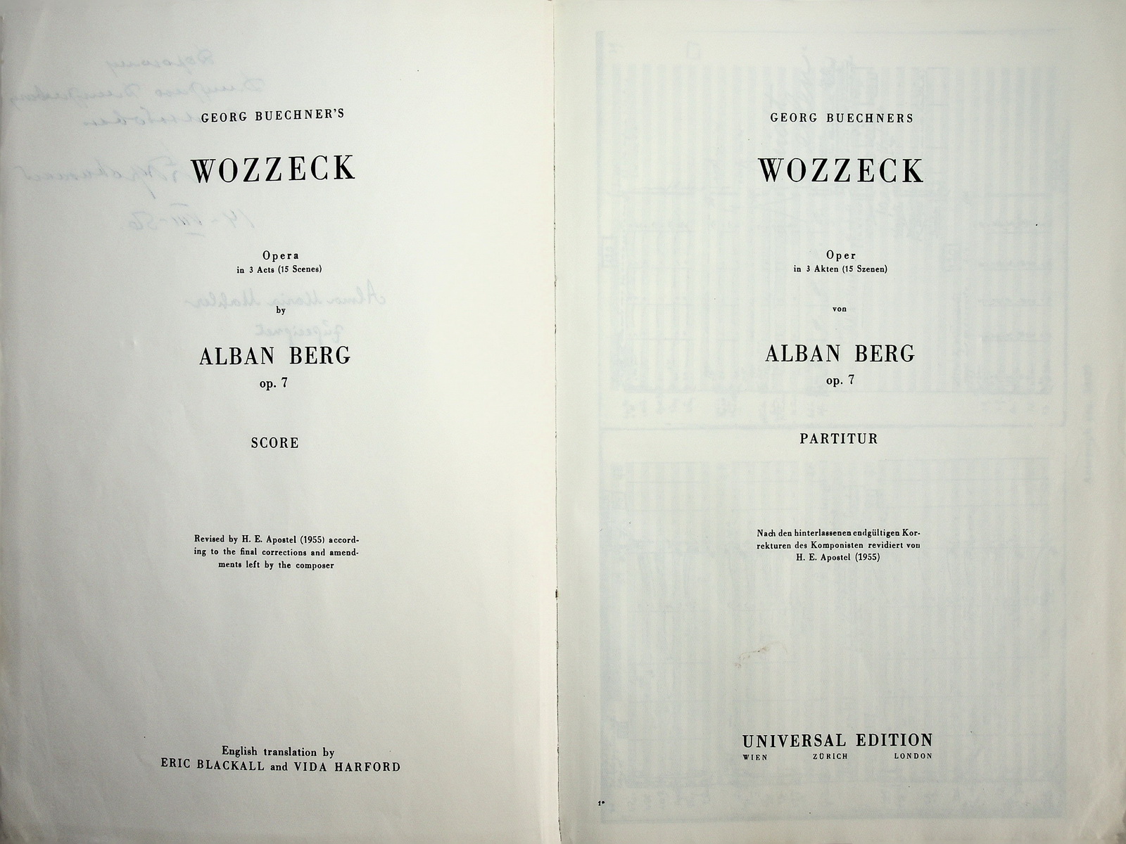 Alan Berg. “Wozzeck”. Opera. “Dedicated to Alma Maria Mahler”. Score. Universal Edition. Vienna-Zurich-London, ~1920.