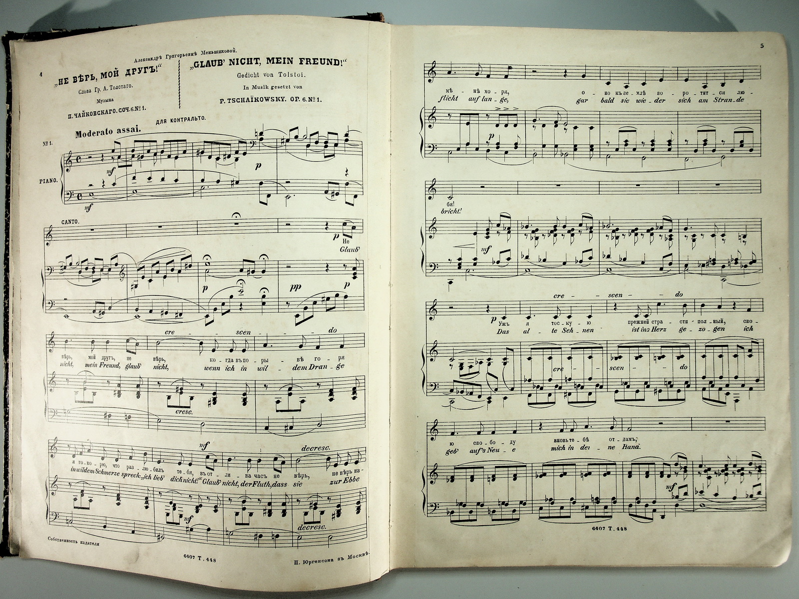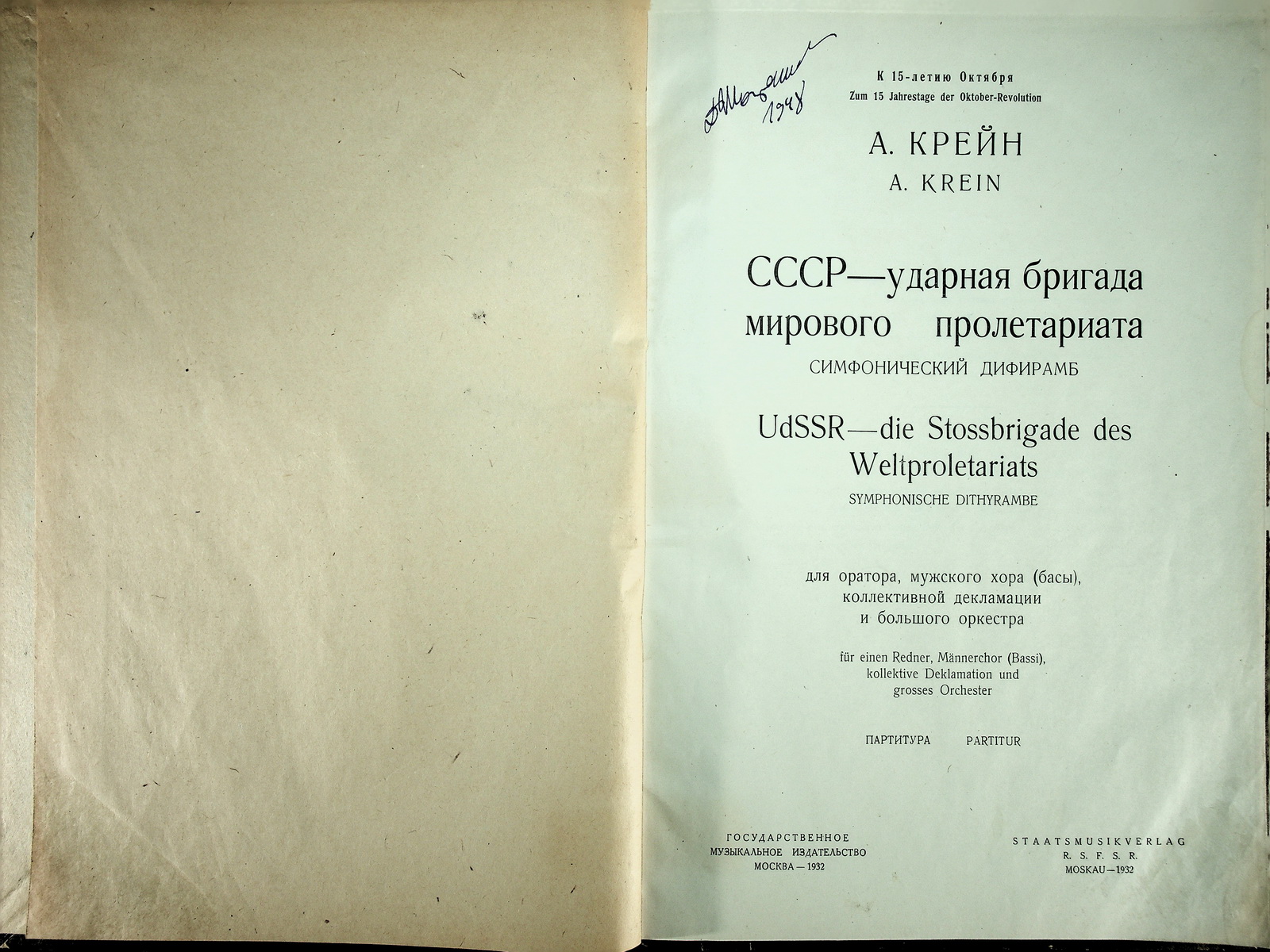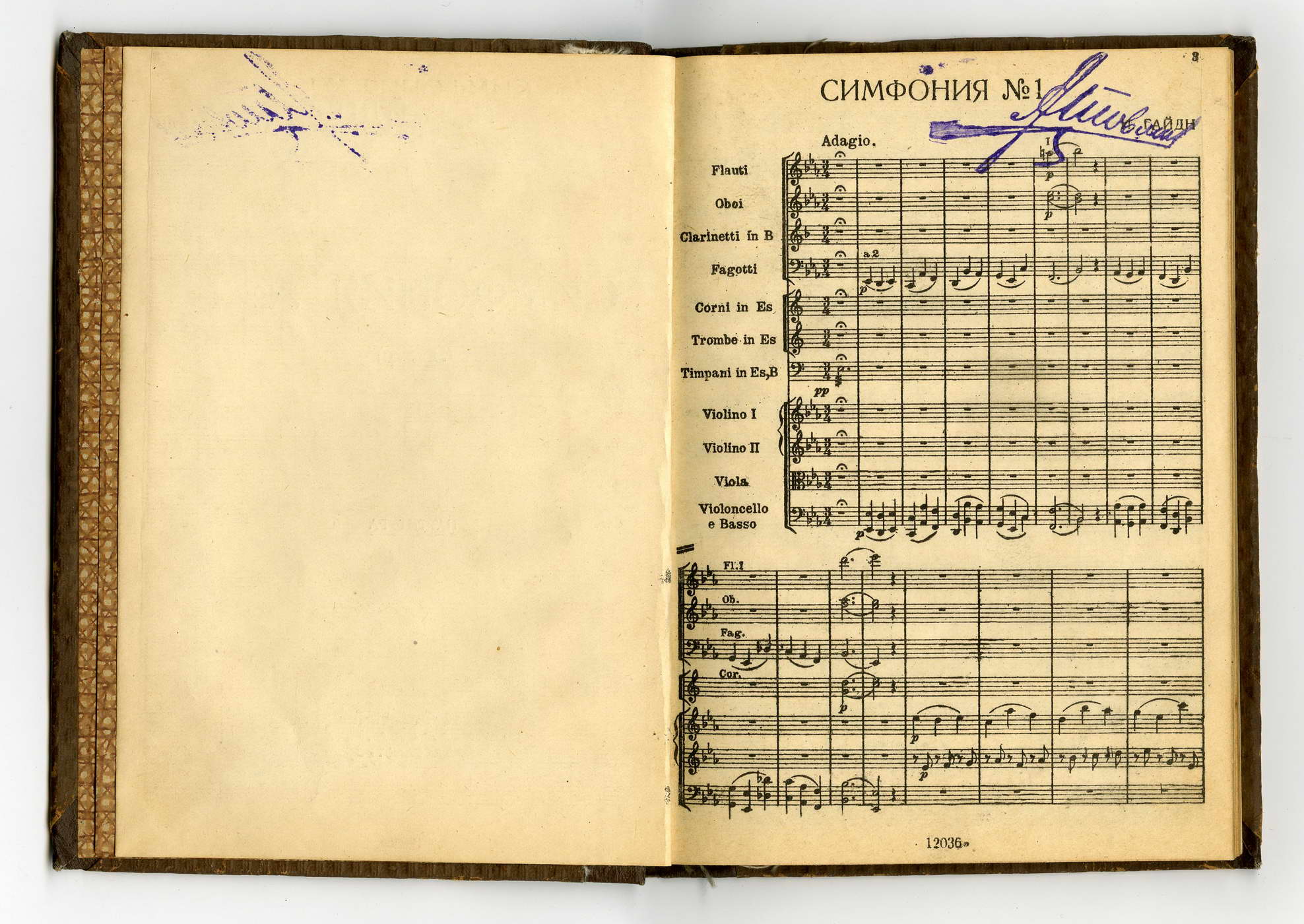 The owner's binding of many of the scores of the Shostakovich library was made of calico in the binding workshops of Leningrad in the early 1930s.