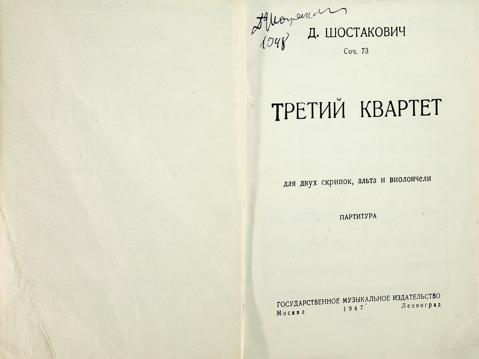 First edition of the Third Quartet. Muzgiz. Leningrad. 1947.
