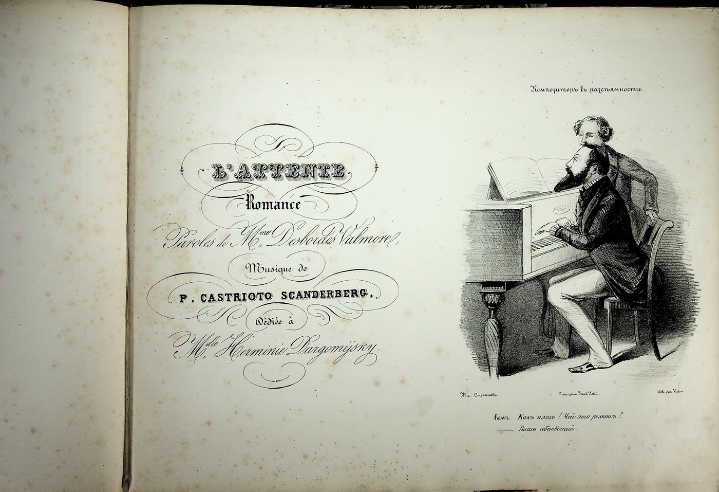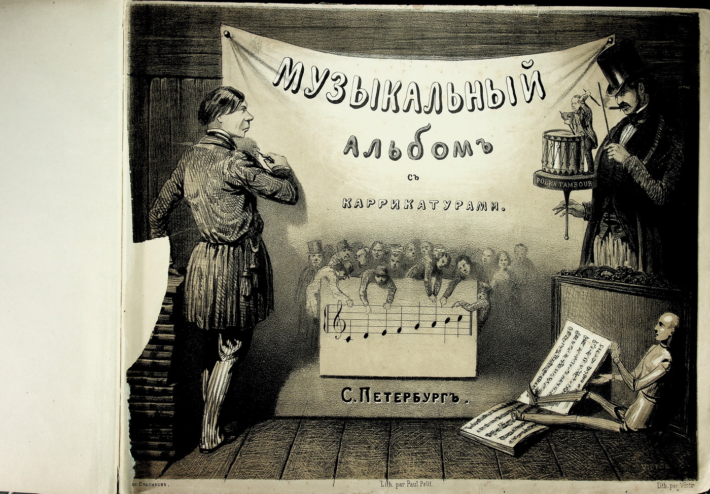 Vintage music album with caricatures. A birthday present from Zoya Lodi, one of the best chamber singers of her time.