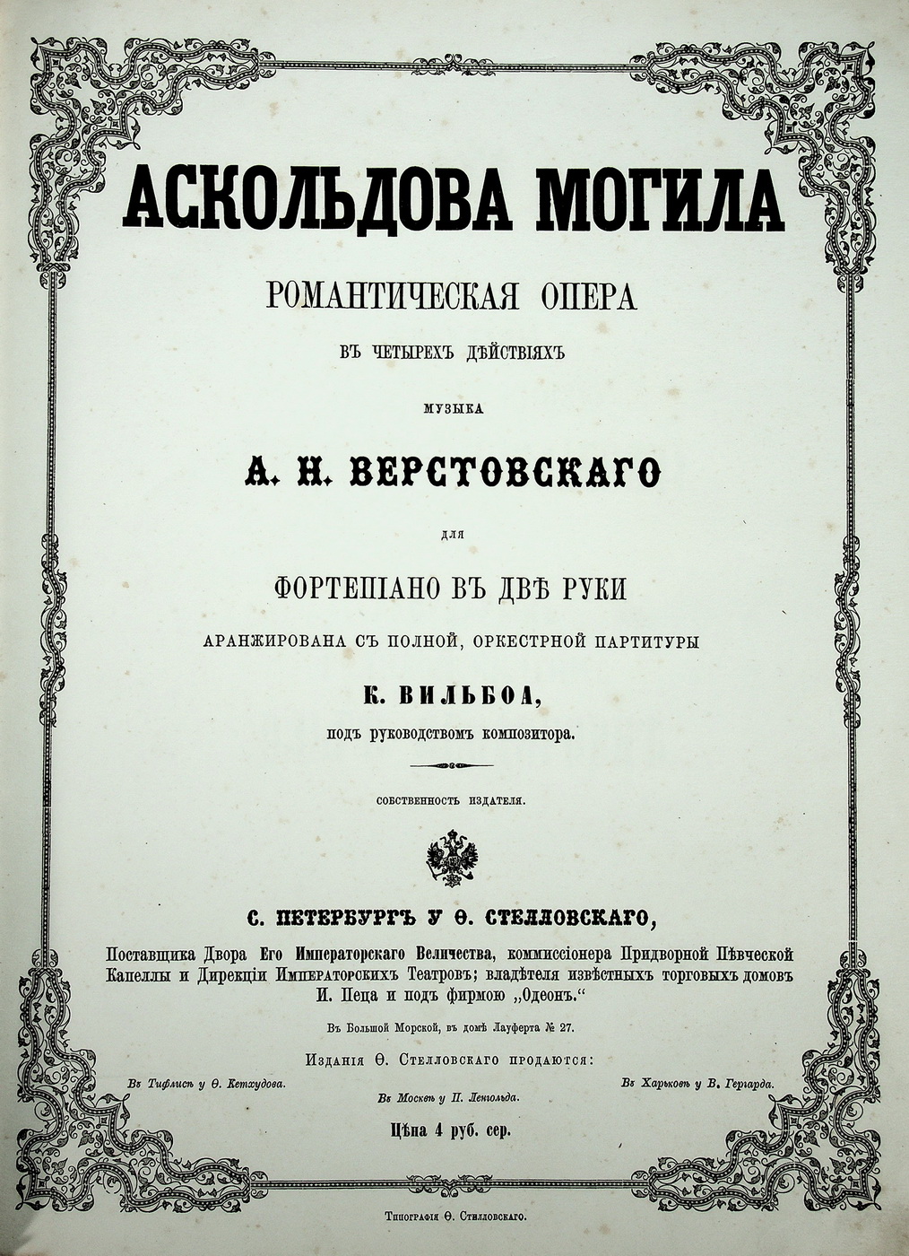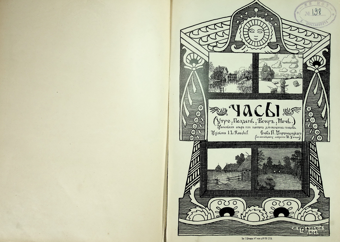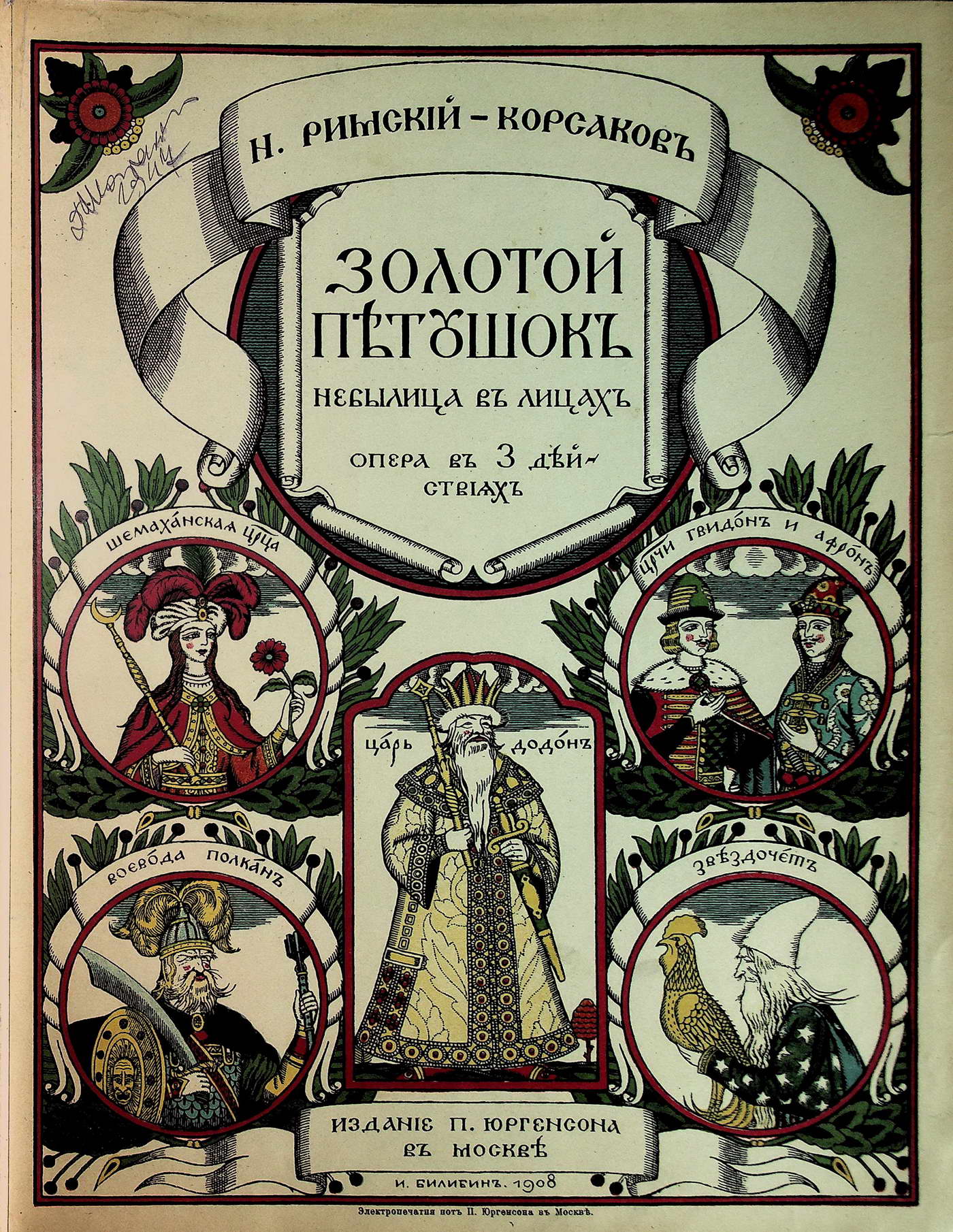 First edition of the piano score of the opera with the famous cover by Ivan Biblibin.
