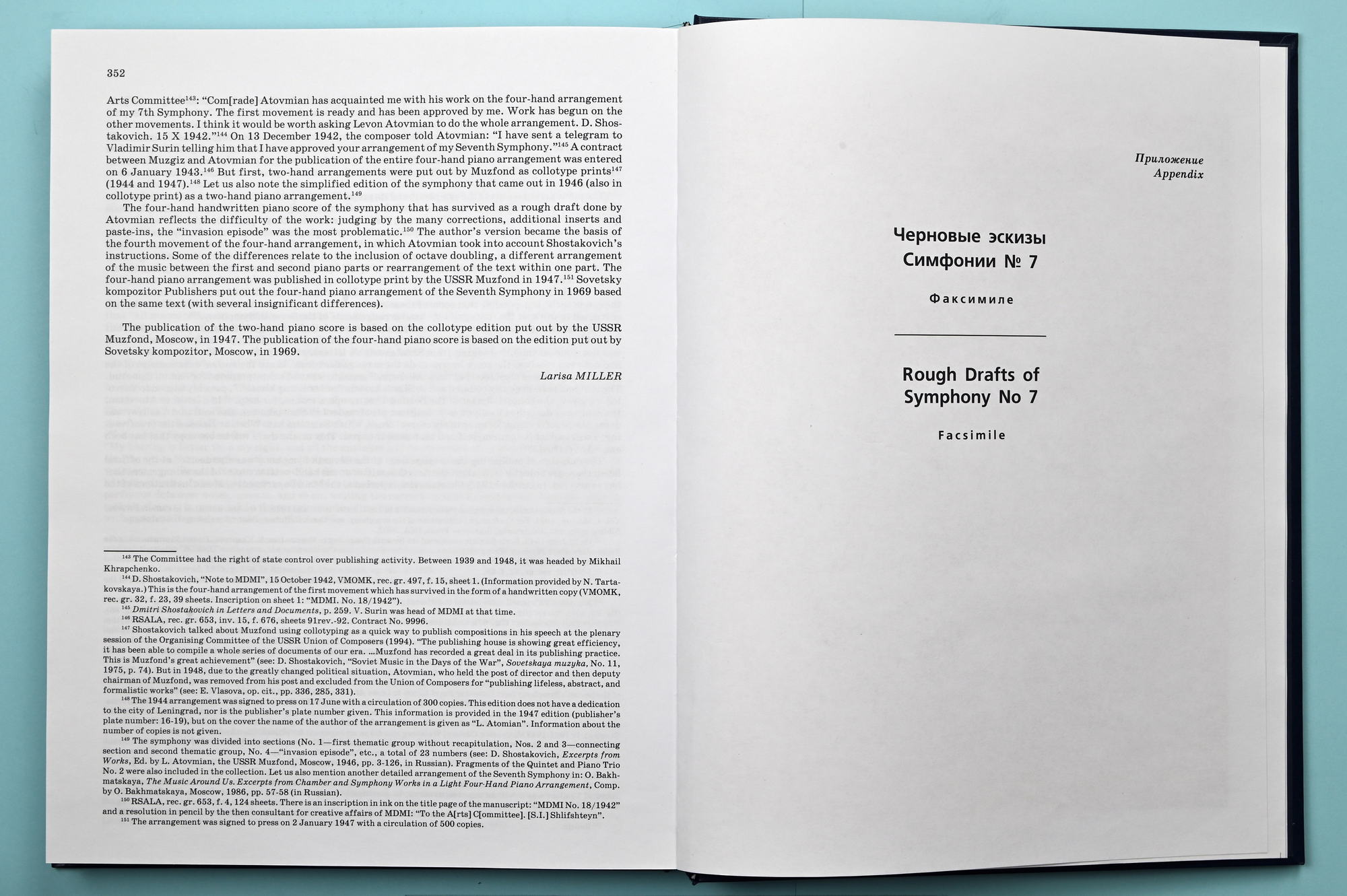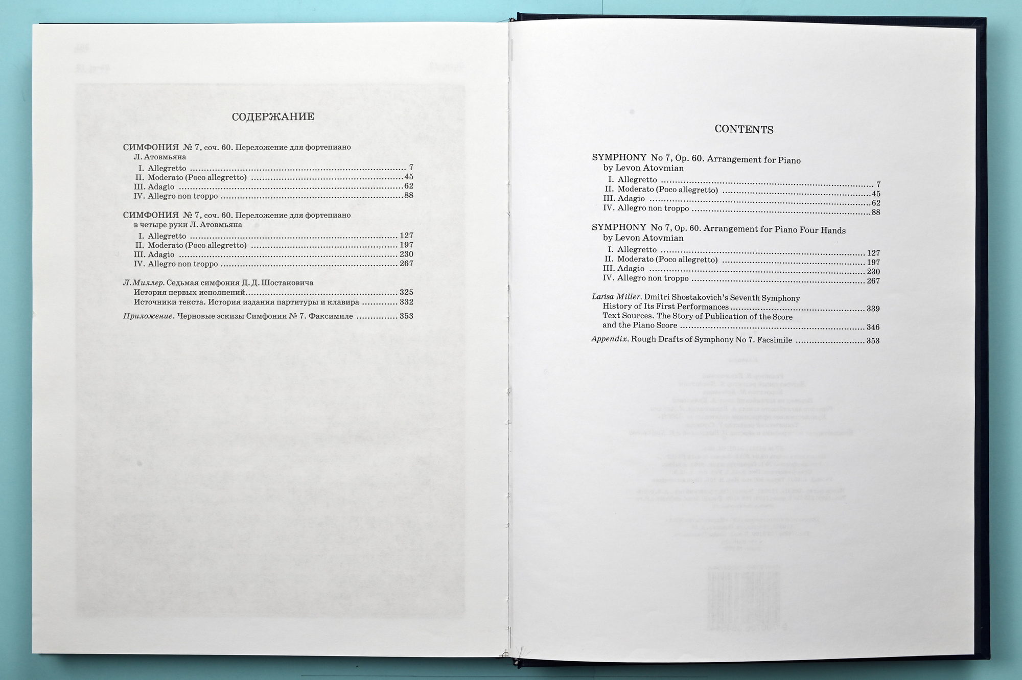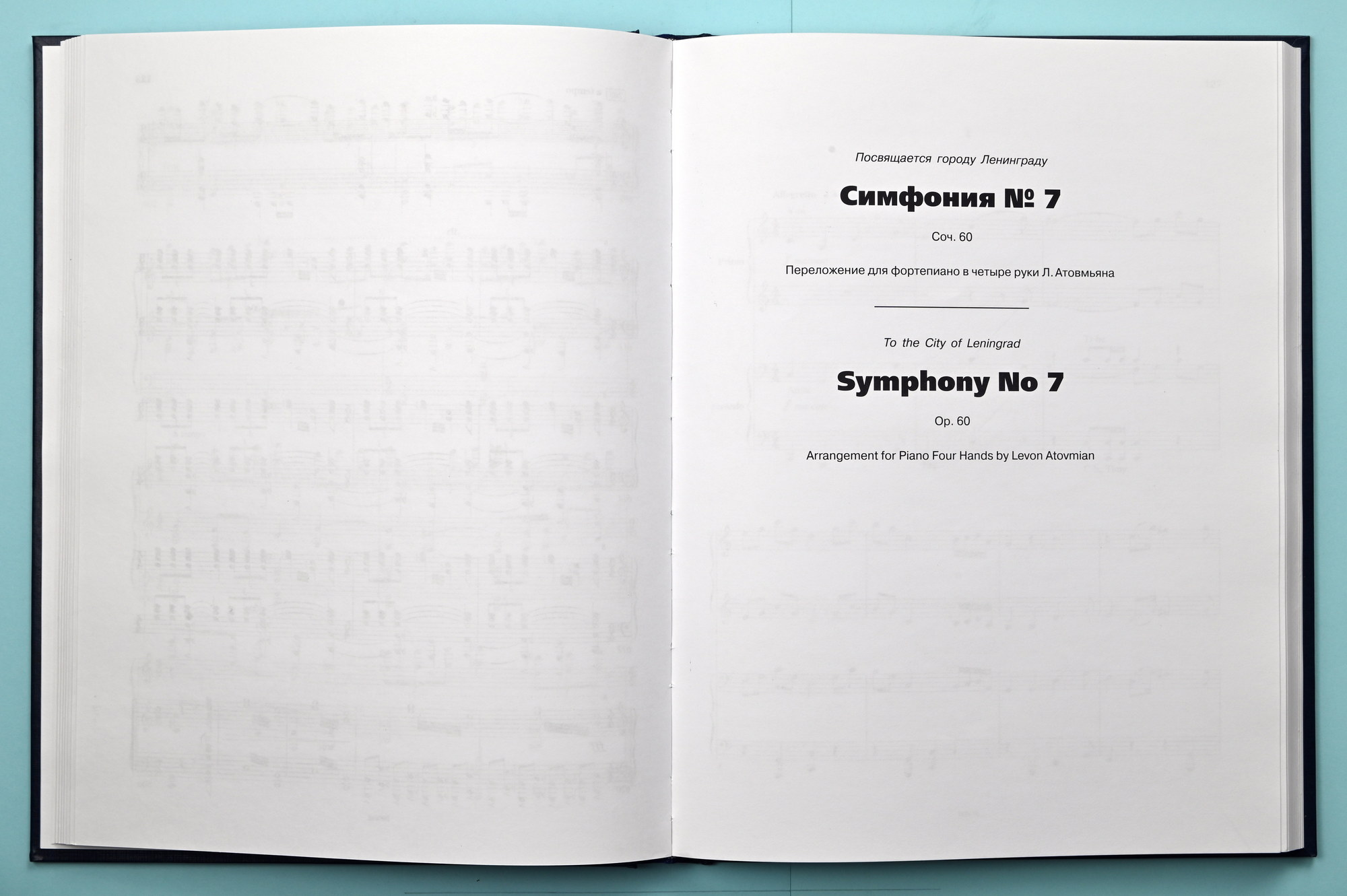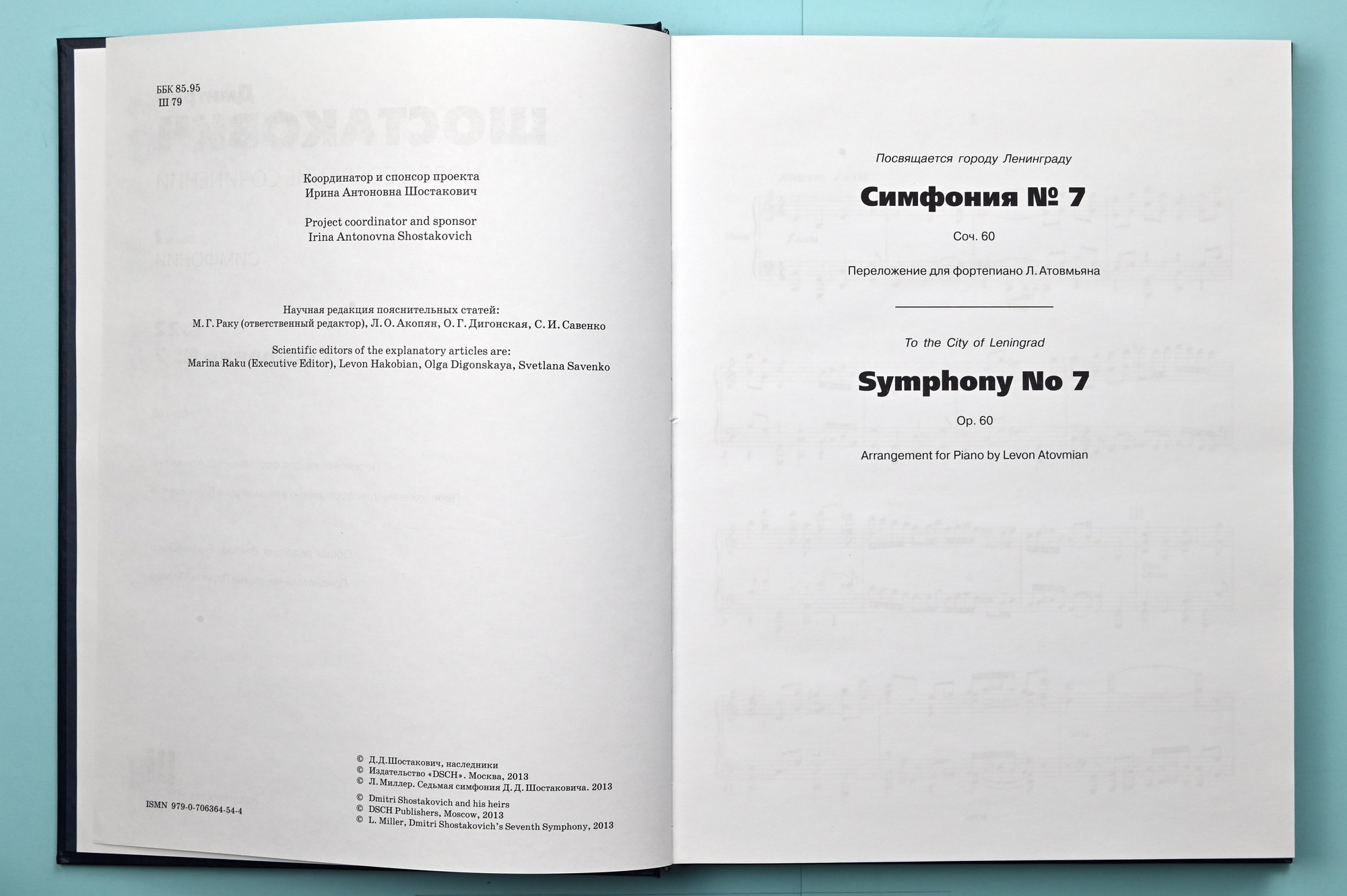 Вопрос об издании переложения Седьмой симфонии также решался на официальном уровне: на сохранившихся рукописных экземплярах переложения существуют надписи чиновников Комитета по делам искусств. В октябре 1942 года Шостакович сообщил в Главное управление музыкальных учреждений (ГУМУ) Комитета по делам искусств: «Тов. Атовмьян познакомил меня со своей работой по переложению в 4 руки моей 7-й симфонии. 1-я часть уже готова и мною одобрена. Начата работа над другими частями. Считаю целесообразным заказать Л. Т. Атовмьяну всё переложение. Д. Шостакович. 15 X 1942». 13 декабря 1942 года композитор сообщал Атовмьяну: «отправил телеграмму В. Н. Сурину, в которой сообщаю о том, что я утвердил твоё переложение моей Седьмой симфонии». Договор Музгиза с Атовмьяном на издание переложения всей симфонии для фортепиано в четыре руки был заключён 6 января 1943 года. Но первоначально вышли двухручные переложения, отпечатанные Музфондом стеклографическим способом (1944 и 1947 годы). В 1946 году вышло упрощённое издание симфонии (также в виде стеклографии) в переложении для фортепиано в две руки.