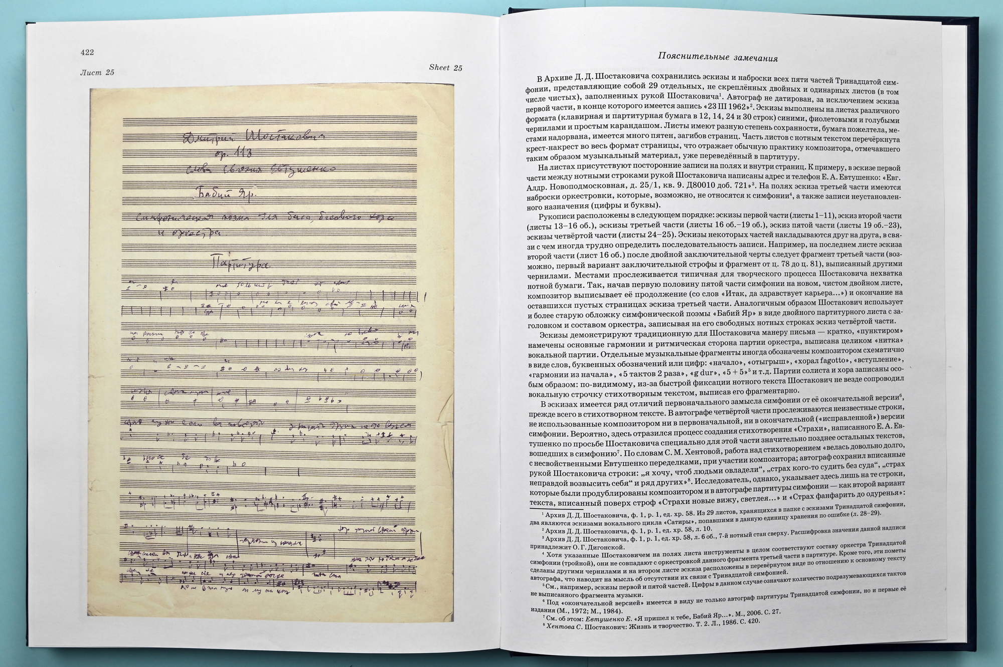 В день завершения последней части (20 июля 1962 года) Шостакович тем же вечером выехал в Киев для встречи с Б. Р. Гмырей, а затем, 23 июля, — в Усть-Нарву к Е. А. Мравинскому, которые должны были провести премьеру симфонии. Через некоторое время от обоих музыкантов последовал фактический отказ от исполнения. Таким образом, можно утверждать, что к моменту ознакомления Гмыри и Мравинского с симфонией в 20-х числах июля клавир уже был завершён. Об этом, в частности, вспоминал и Евтушенко: «...в последних числах июля он [Шостакович] пригласил меня домой, поставил на рояль клавир, где было написано „Тринадцатая симфония“».