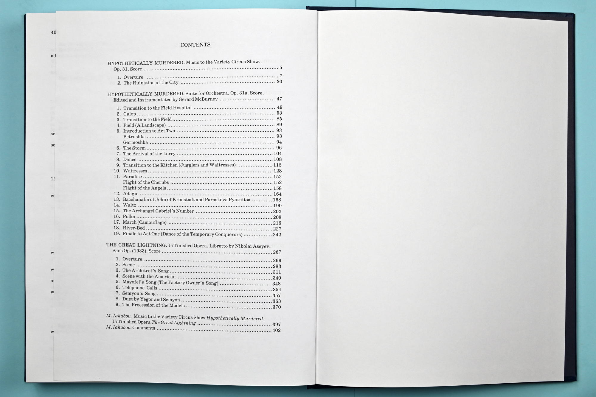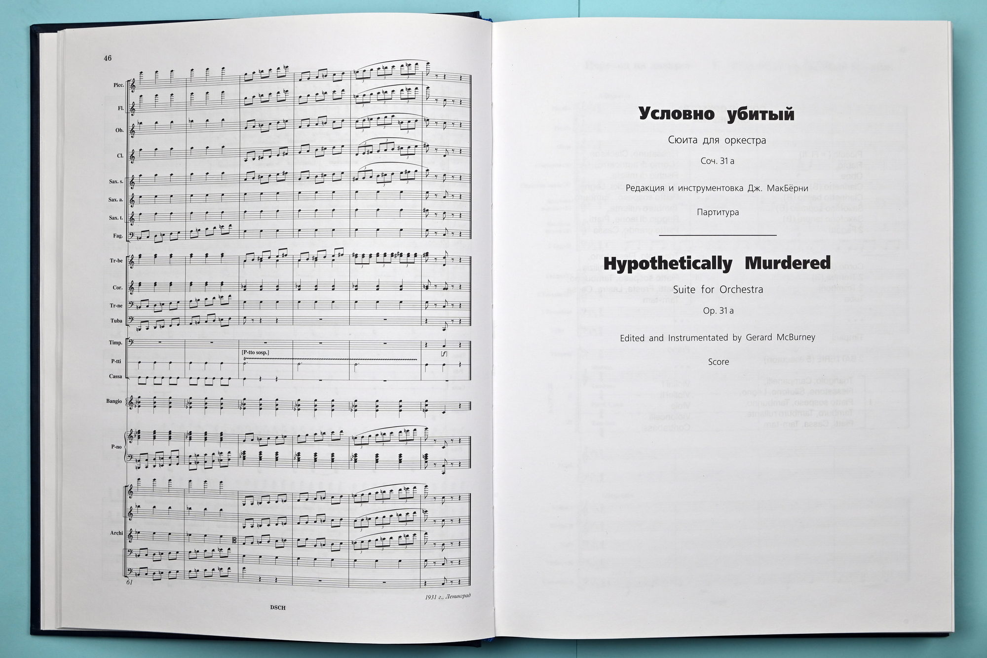 «Условно убитый». Соч. 31. Музыка к эстрадно-цирковому представлению. Инструментовка Дж. Мак Бёрни. «Большая молния». Б/н соч. Редактор Сергей Чеботарев. Пояснительная статья Манашира Якубова.