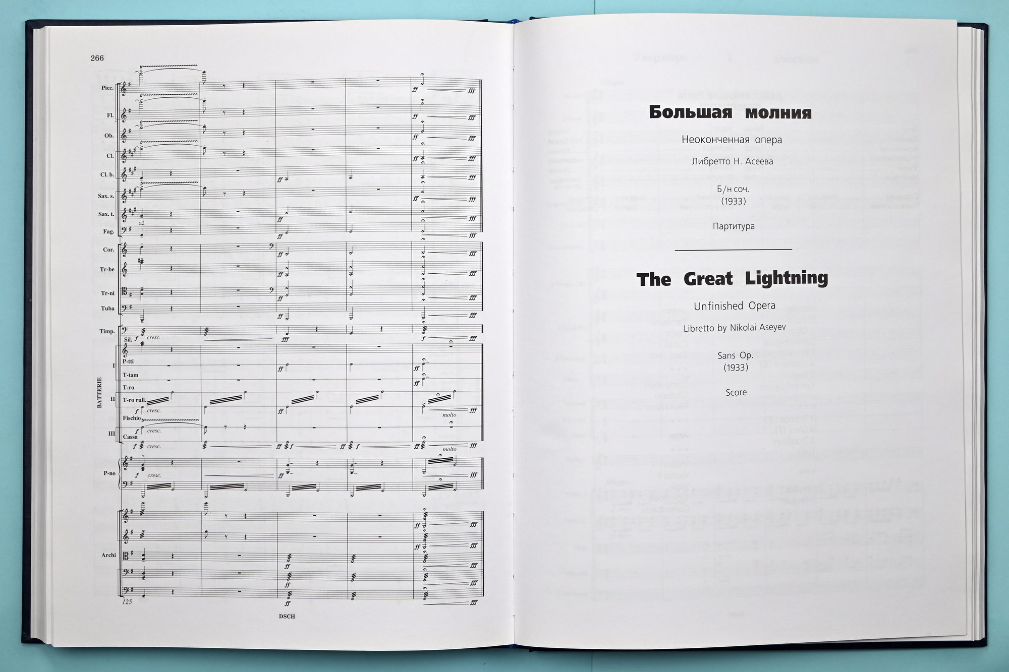 Комическая опера «Большая молния», либретто Николая Асеева, автор прекратил писать после сочинения 9 номеров.