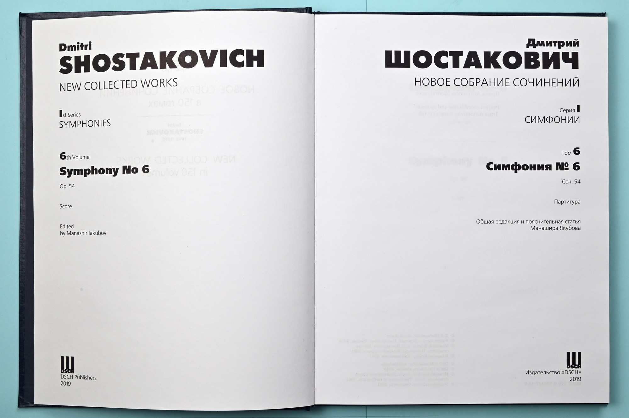 Исходным текстом всех публикаций партитуры Шестой симфонии является не автограф, а рукописная копия партитуры с пометками автора, хранящаяся в личном фонде Д. Д. Шостаковича в Российском государственном архиве литературы и искусства (ф. 2048, oп. 1, ед. хр. 7). Партитура Шестой симфонии издавалась при жизни композитора трижды: в 1941 (М., Музгиз), 1962 (М., Музыка) и 1968 годах (М., Музыка). В 1980 году вышло первое посмертное издание партитуры в третьем томе Собрания сочинений Д. Д. Шостаковича (М., Музыка, 1980), при подготовке которого были использованы авторизованная рукописная копия и издания 1941 и 1962 годов, но не учтено издание 1968 года.