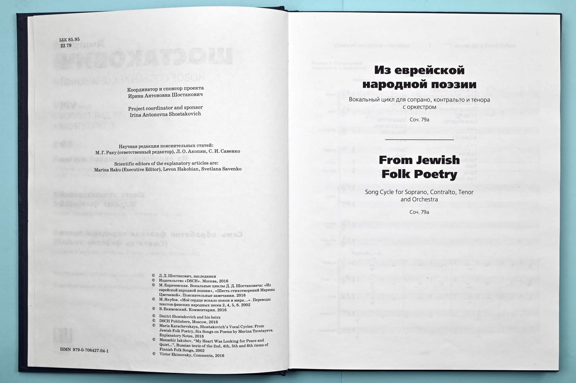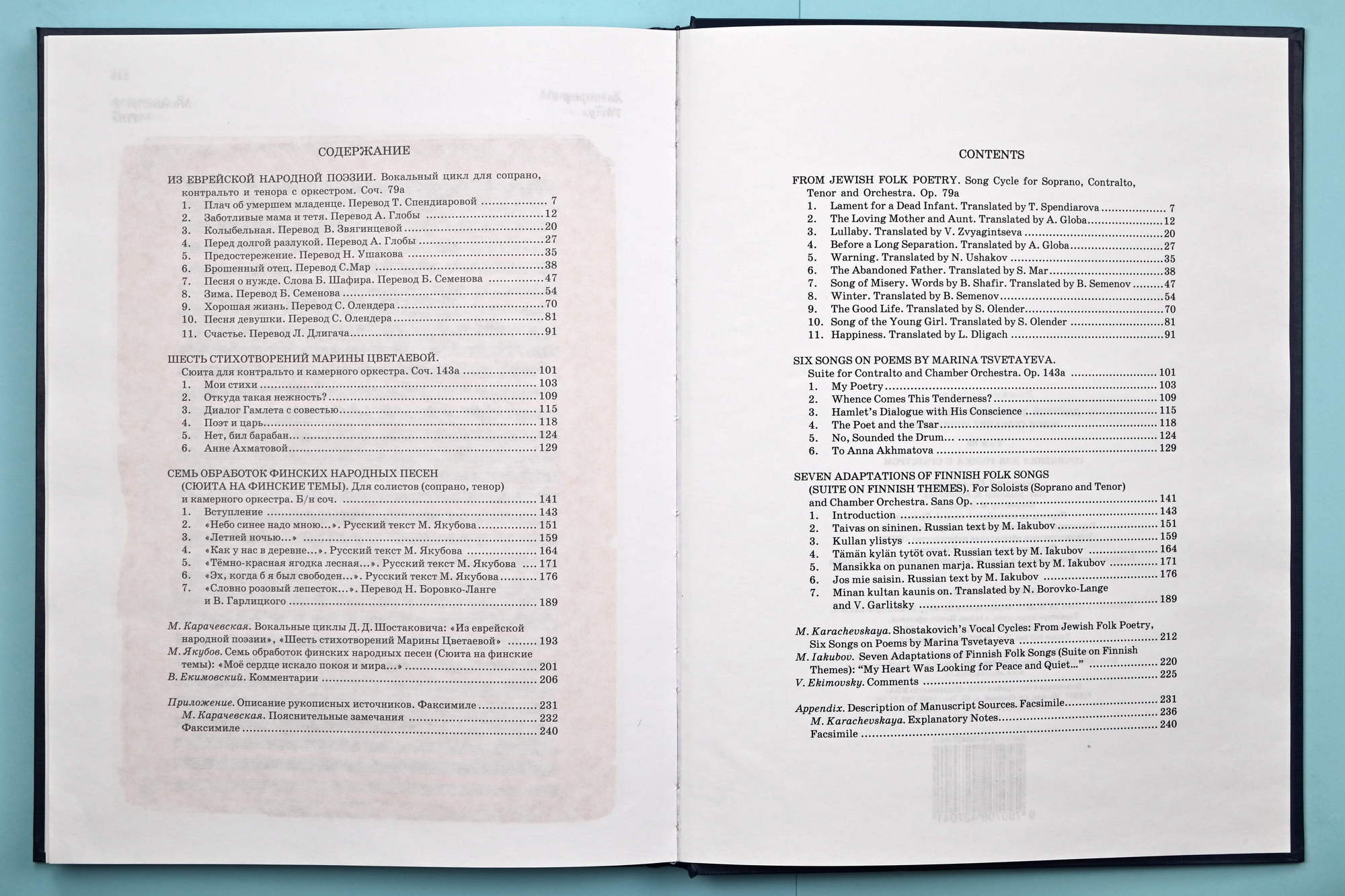 «Из еврейской народной поэзии». Вокальный цикл для сопрано, контральто и тенора с оркестром, соч. 79a. Шесть стихотворений Марины Цветаевой. Сюита для контральто и камерного оркестра, соч. 143a. Семь обработок финских народных песен (Сюита на финские темы). Для солистов (cопрано, тенор) и камерного оркестра, б/н соч.
