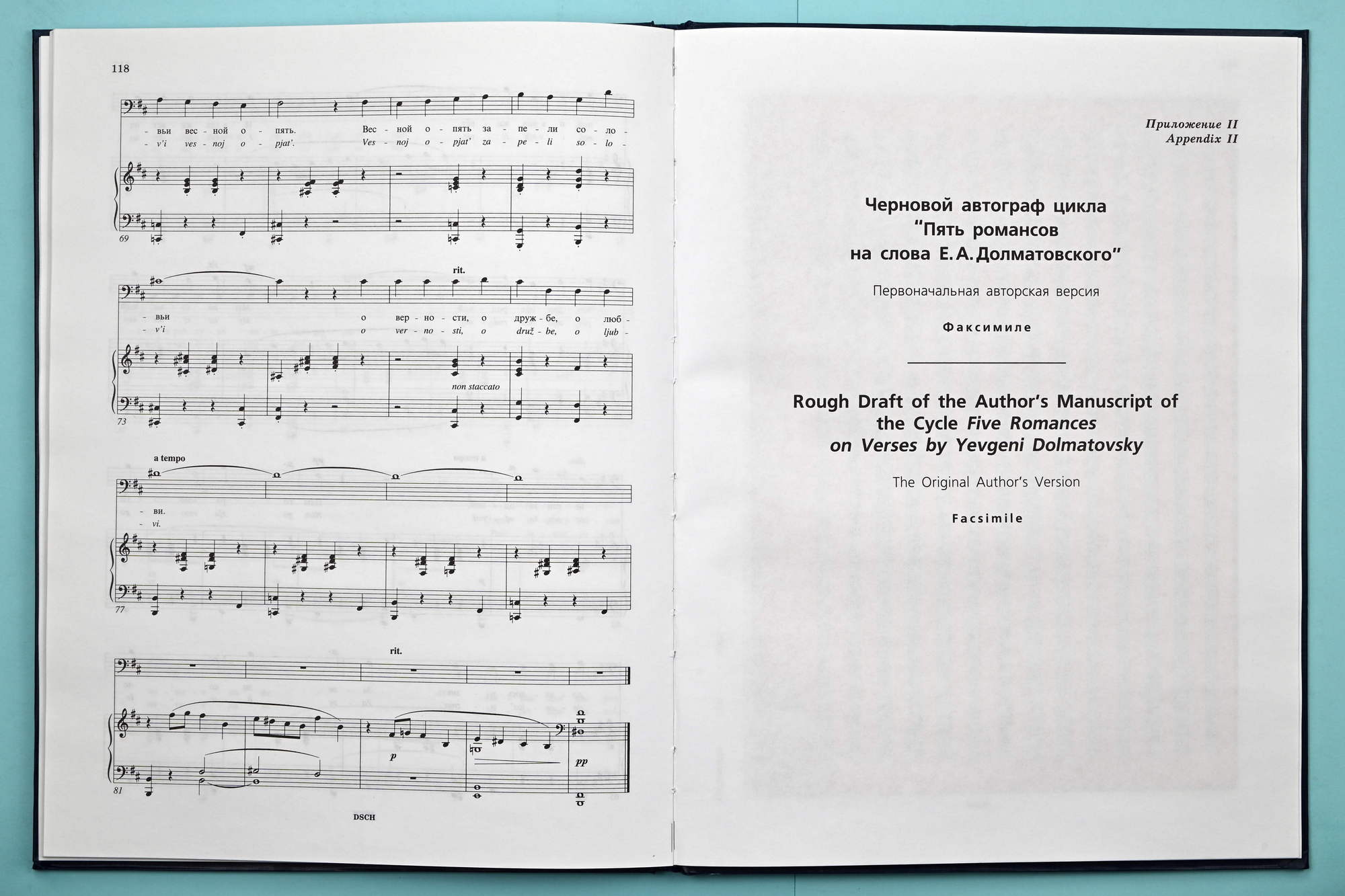 Черновой автограф цикла «Пять романсов на слова Е. А. Долматовского». (Первоначальная авторская версия). Факсимиле.