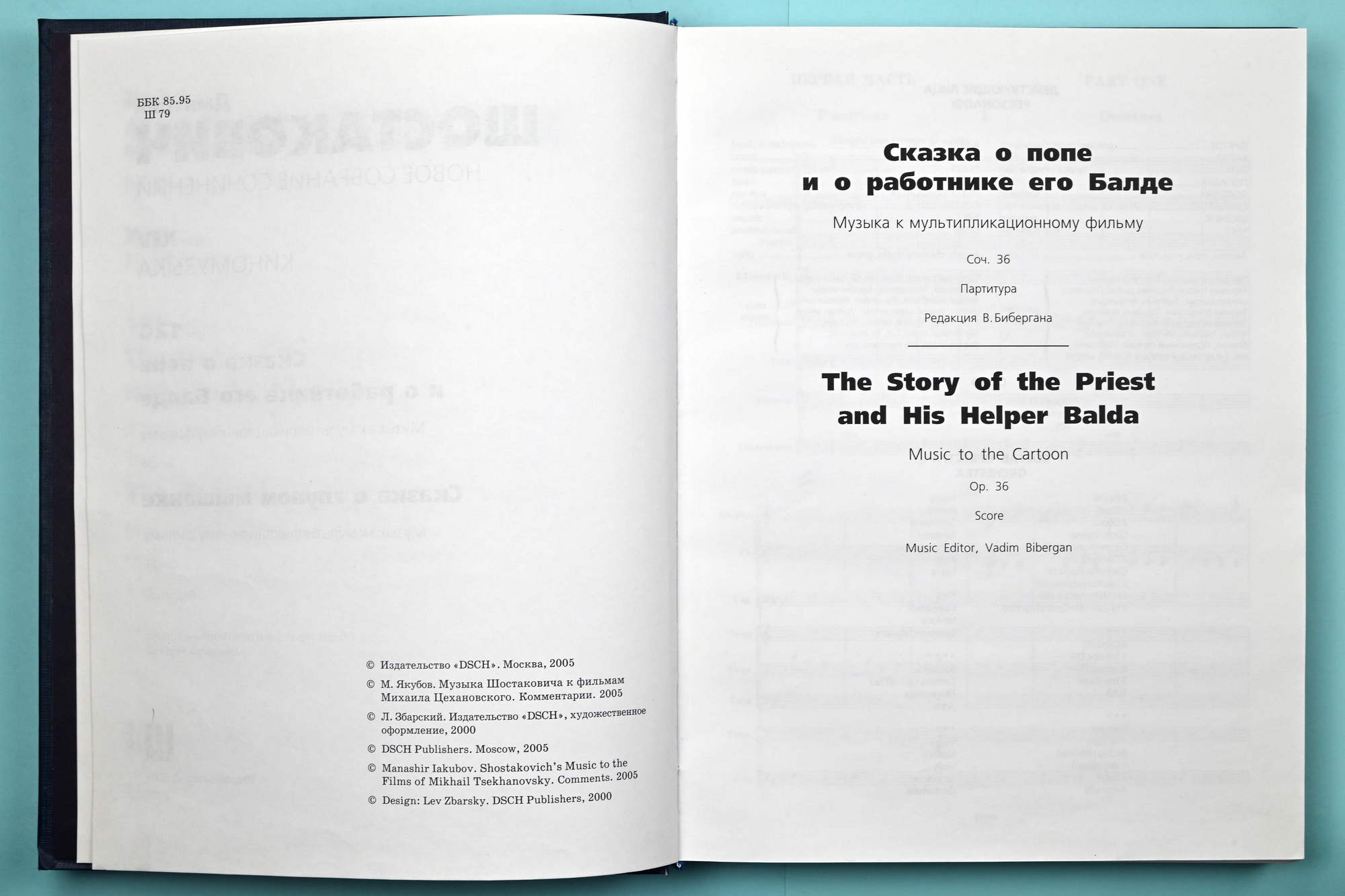 In this edition the music score to the film The Story of the Priest and His Helper Balda is being published in the version compiled by composer Vadim Bibergan, one of Shostakovich’s students at the Leningrad Conservatory. Vadim Bibergan worked on his teacher’s composition during the staging of the ballet Balda at Russia’s Bolshoi Theatre in 1999.