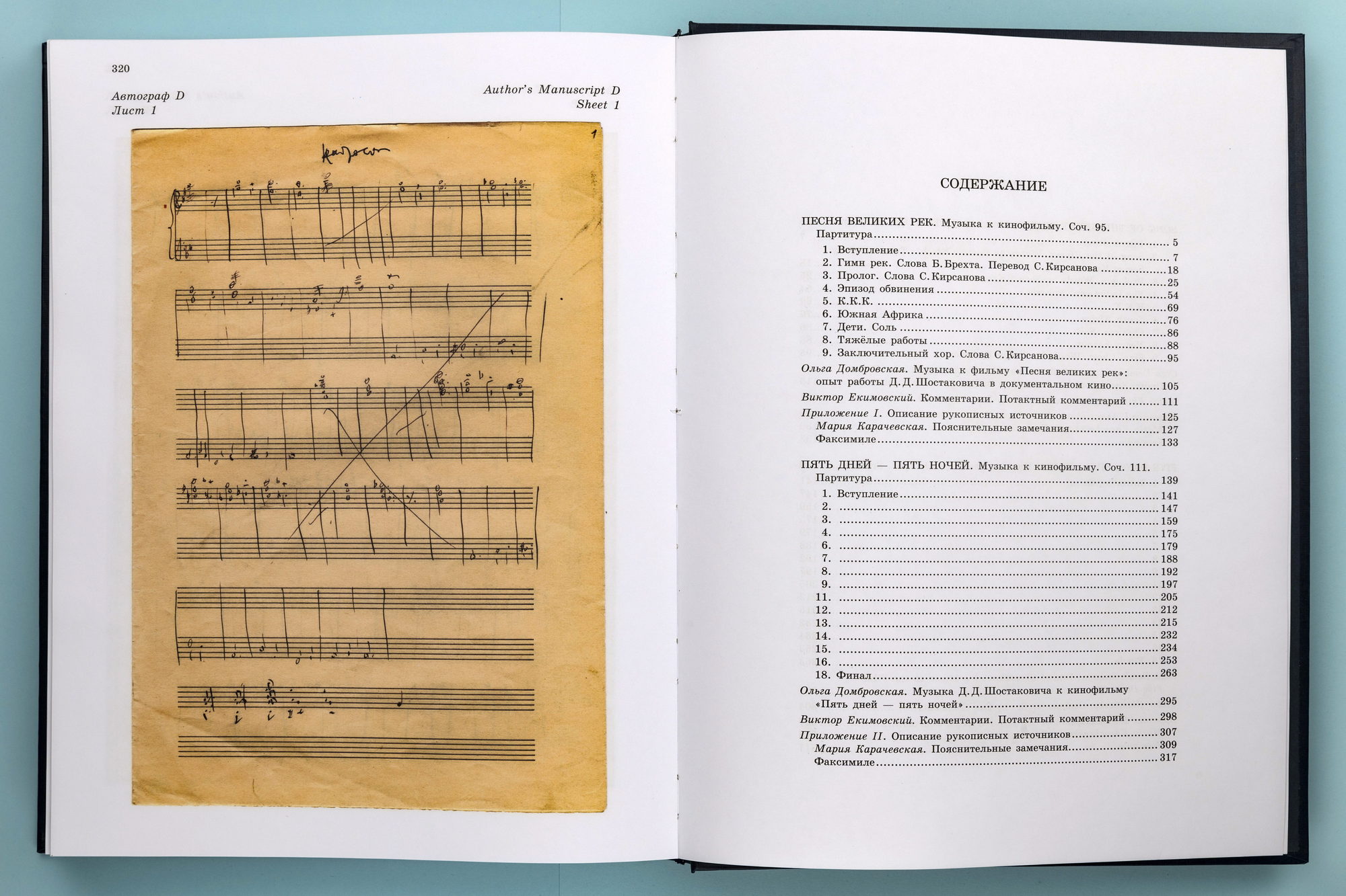 - The handwritten copy of the score: Cover, No. 1. Hymn, No. 2. Prologue, No. 3. The Indictment Episode, No. 4. K.K.K., No. 6. South Africa, No. 7. Children. Salt (2 versions) and No. 8. Heavy Labour, kept in the Russian State Symphony Cinema Orchestra Library—film 649.
