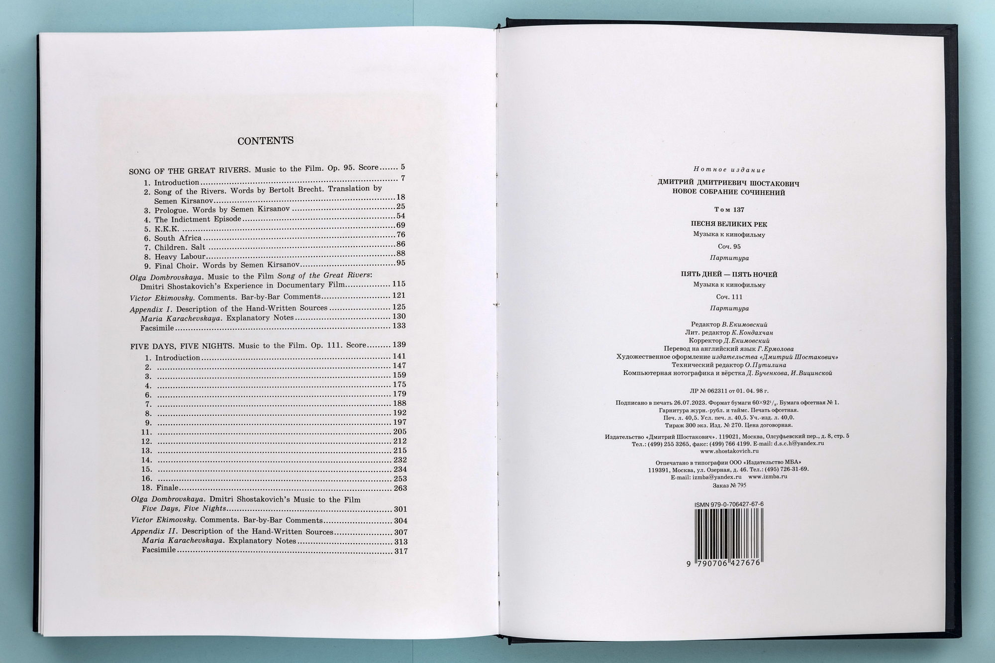- The edition of the score beginning from No. 2: Dmitri Shostakovich, “Poem about Labour” (from the music to the film Unity), the U.S.S.R. Music Fund, Moscow, 1956.