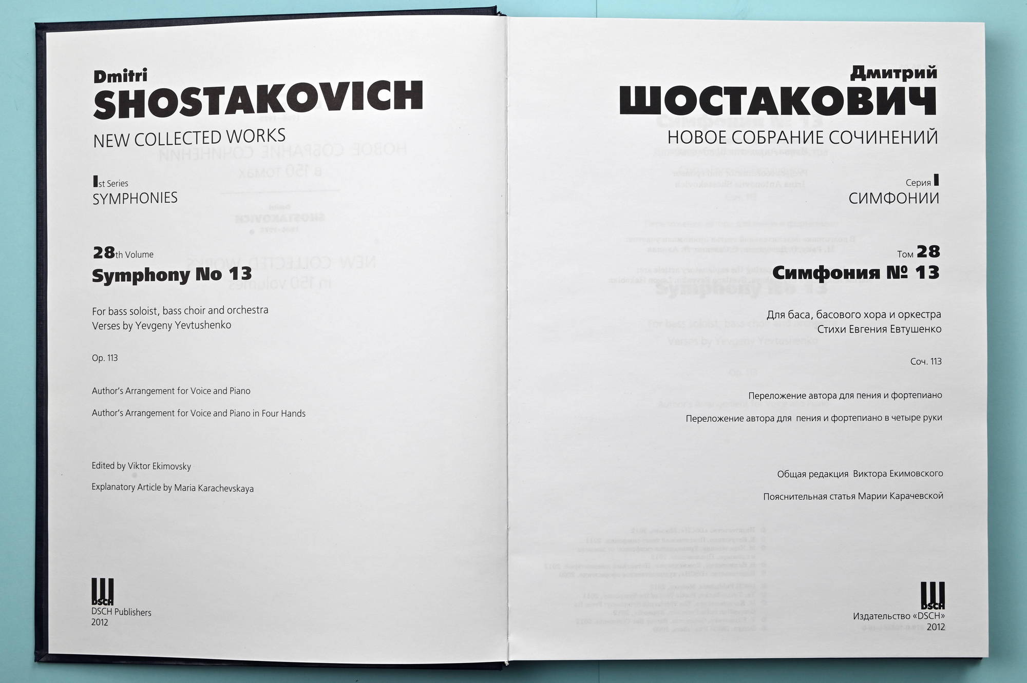 This publication is based on the author’s manuscript of the piano score collated with the 1984 edition of the piano score in two hands and the 2011 edition of the score (New Collected Works, Vol. 13, DSCH, Moscow).
