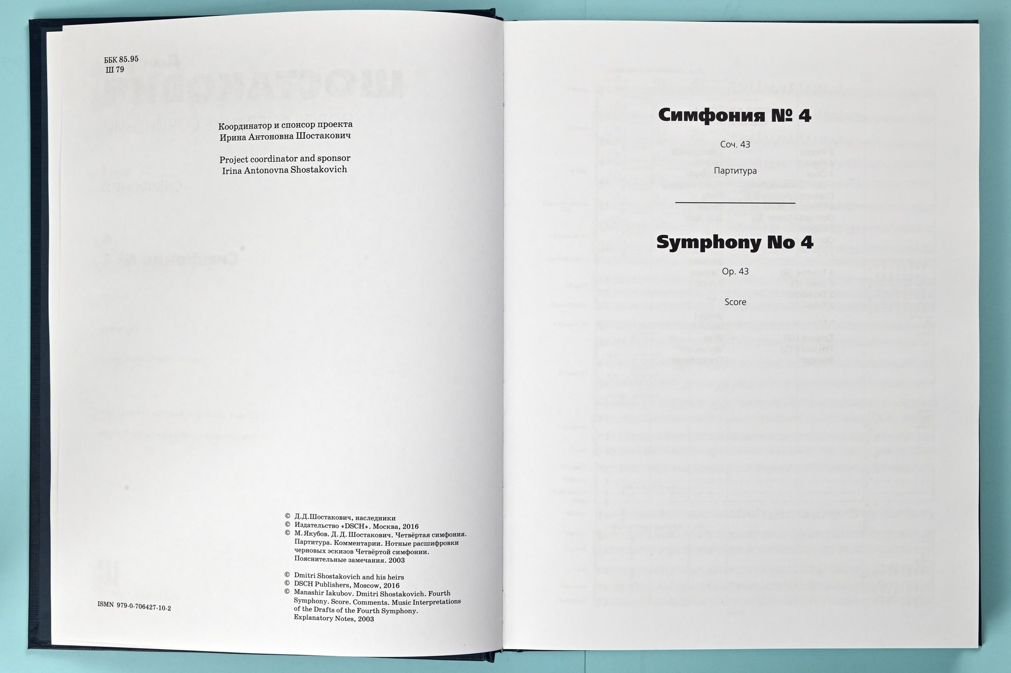 asked to perform the symphony in 1961, at first had to acquaint himself with it from the glass duplicated edition (1946) of the arrangement for two pianos. During a meeting about the proposed premier, Shostakovich said: “Please give me the four-hand arrangement. My original score has been lost, the copy is in Leningrad. I have forgotten a great deal in this symphony and must look at it.” The score copy restored by Shalman, according to which the premiere was performed, apparently also became the basis for the first publication of the Fourth Symphony (Sovetsky kompositor Publishers, Moscow, 1962).